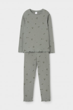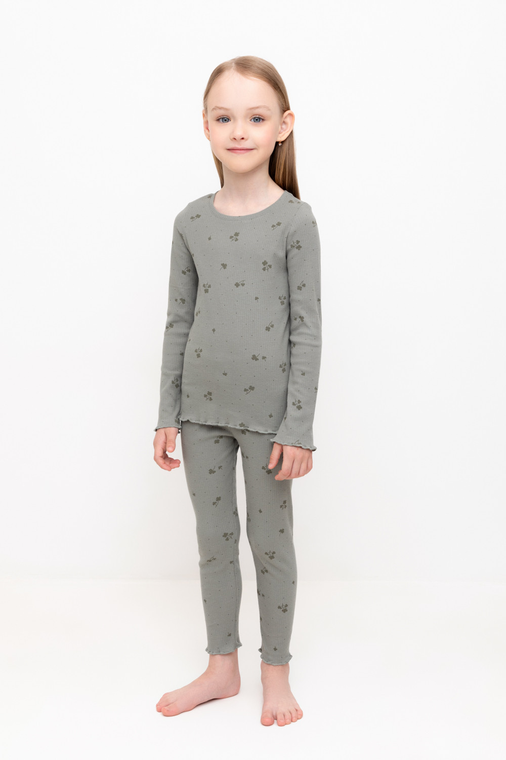 Трикотажная пижама в рубчик из натурального хлопка . Джемпер с длинными втачными рукавами. У лосин мягкий, эластичный пояс на резинке. Оригинальная набивка выполнена из стойких, гипоаллергенных текстильных красителей. Комплект сохраняет цвет и форму после многократных стирок. Все трикотажные полотна производятся в соответсвии с нормами Швейцарского сертификата ЭкоТекс.