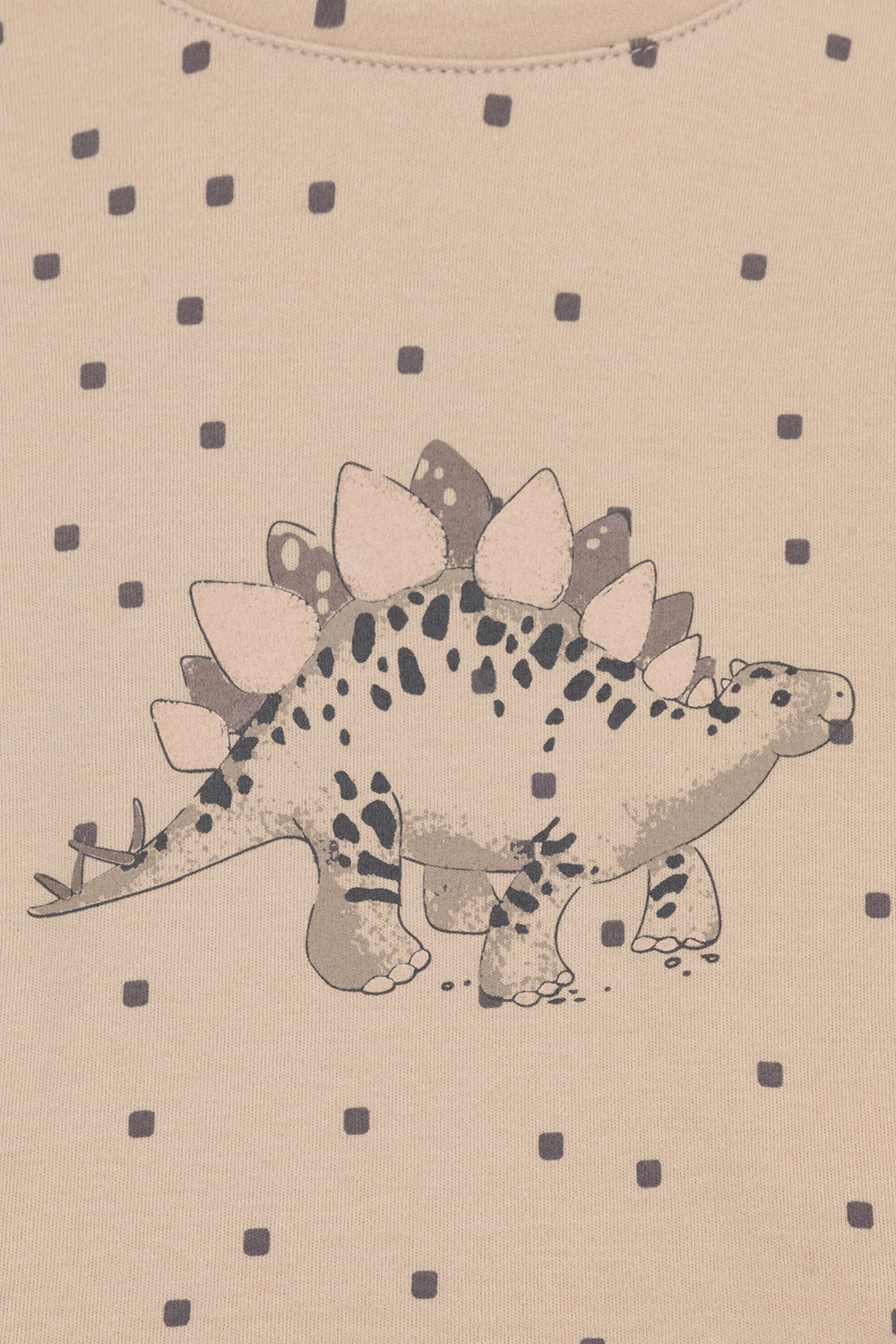 Трикотажная пижама из натурального хлопка. Джемпер с длинными втачными рукавами и брюки с эластичной резинкой в поясе. Мягкие манжеты на рукавах и по низу брюк. Оригинальная набивка и принт выполнены из стойких текстильных гипоаллергенных красителей. Изделие сохраняет цвет и форму после многократных стирок. Все трикотажные полотна производятся в соответсвии с нормами швейцарского сертификата ЭкоТекс.