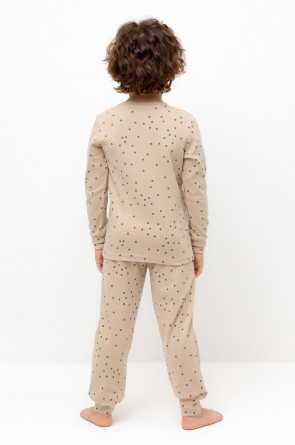 Трикотажная пижама из натурального хлопка. Джемпер с длинными втачными рукавами и брюки с эластичной резинкой в поясе. Мягкие манжеты на рукавах и по низу брюк. Оригинальная набивка и принт выполнены из стойких текстильных гипоаллергенных красителей. Изделие сохраняет цвет и форму после многократных стирок. Все трикотажные полотна производятся в соответсвии с нормами швейцарского сертификата ЭкоТекс.