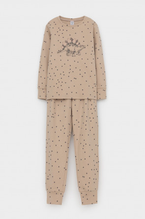 Трикотажная пижама из натурального хлопка. Джемпер с длинными втачными рукавами и брюки с эластичной резинкой в поясе. Мягкие манжеты на рукавах и по низу брюк. Оригинальная набивка и принт выполнены из стойких текстильных гипоаллергенных красителей. Изделие сохраняет цвет и форму после многократных стирок. Все трикотажные полотна производятся в соответсвии с нормами швейцарского сертификата ЭкоТекс.