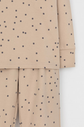 Трикотажная пижама из натурального хлопка. Джемпер с длинными втачными рукавами и брюки с эластичной резинкой в поясе. Мягкие манжеты на рукавах и по низу брюк. Оригинальная набивка и принт выполнены из стойких текстильных гипоаллергенных красителей. Изделие сохраняет цвет и форму после многократных стирок. Все трикотажные полотна производятся в соответсвии с нормами швейцарского сертификата ЭкоТекс.