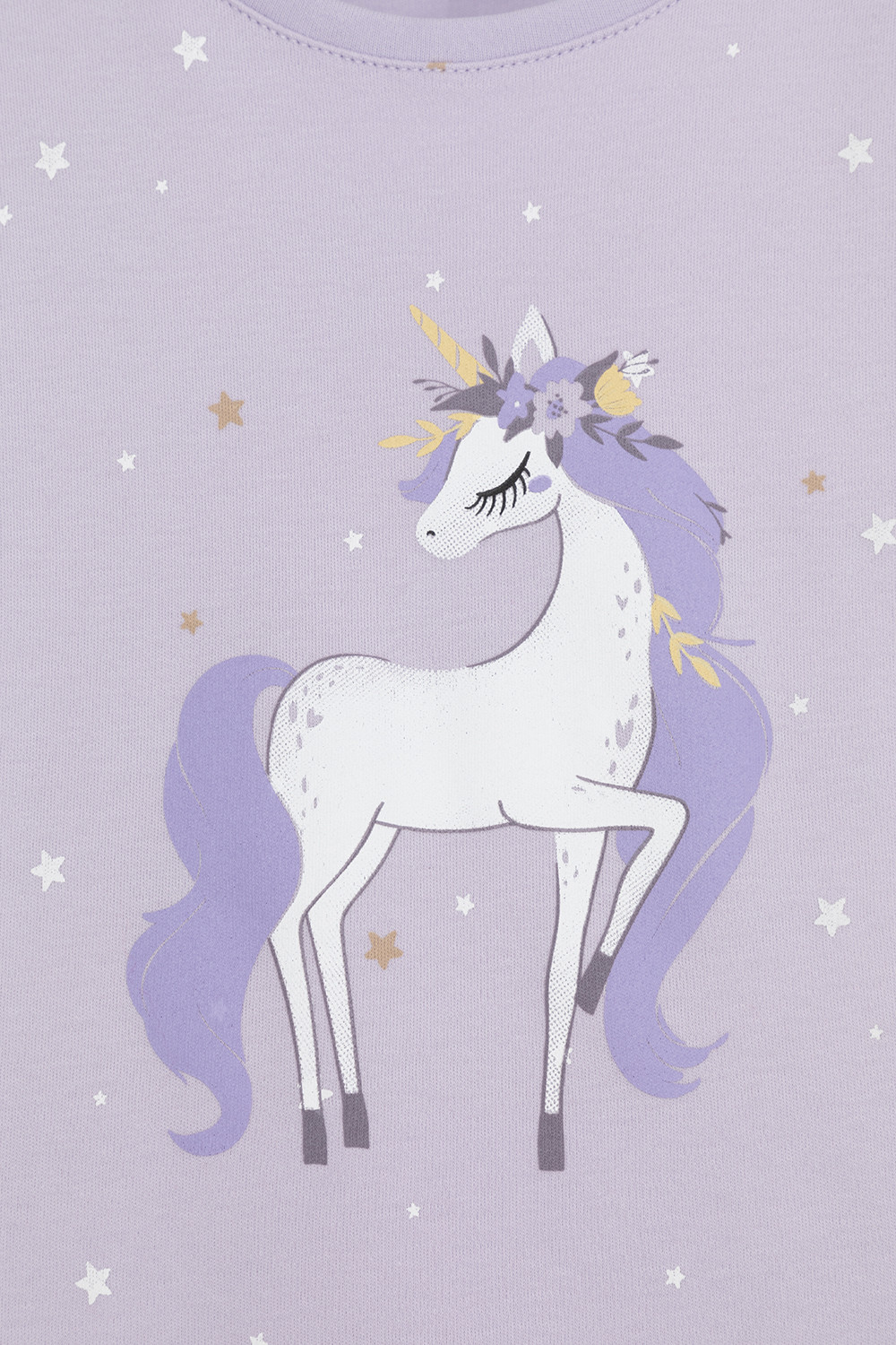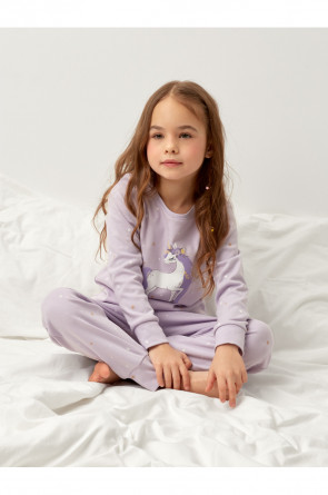 Трикотажная пижама из натурального хлопка. Джемпер с длинными втачными рукавами и брюки с эластичной резинкой в поясе. Мягкие манжеты на рукавах и по низу брюк. Оригинальная набивка и принт выполнены из стойких текстильных гипоаллергенных красителей. Изделие сохраняет цвет и форму после многократных стирок. Все трикотажные полотна производятся в соответсвии с нормами швейцарского сертификата ЭкоТекс.