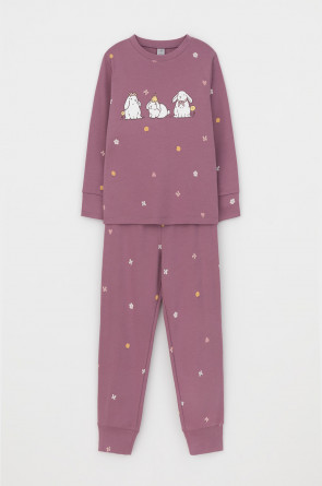Трикотажная пижама из натурального хлопка. Джемпер с длинными втачными рукавами и брюки с эластичной резинкой в поясе. Мягкие манжеты на рукавах и по низу брюк. Оригинальная набивка и принт выполнены из стойких текстильных гипоаллергенных красителей. Изделие сохраняет цвет и форму после многократных стирок. Все трикотажные полотна производятся в соответсвии с нормами швейцарского сертификата ЭкоТекс.
