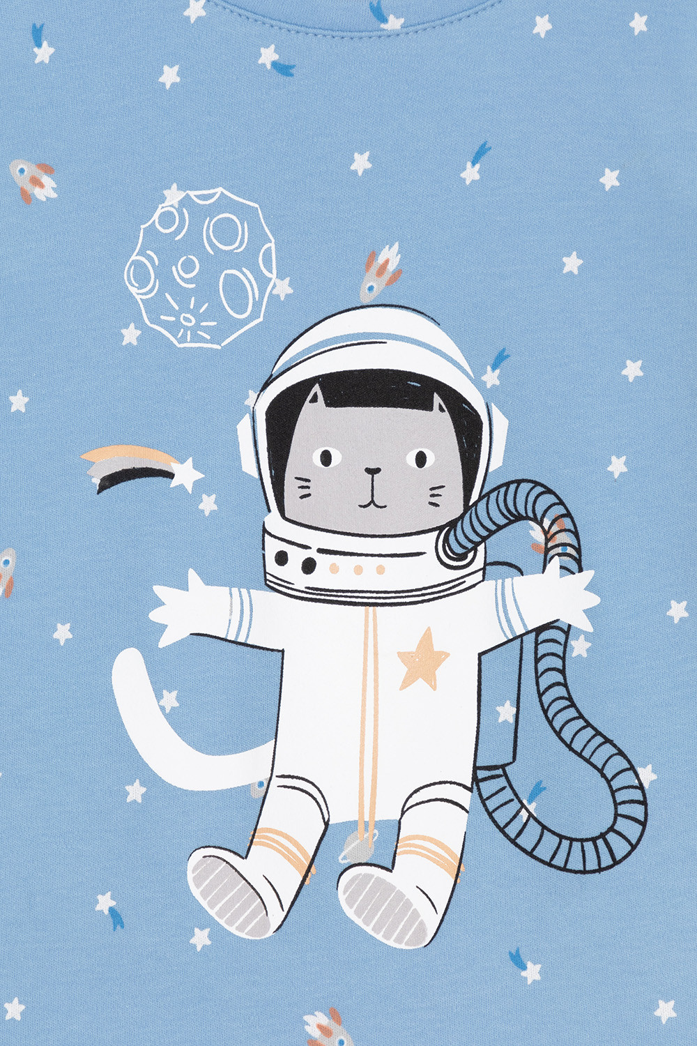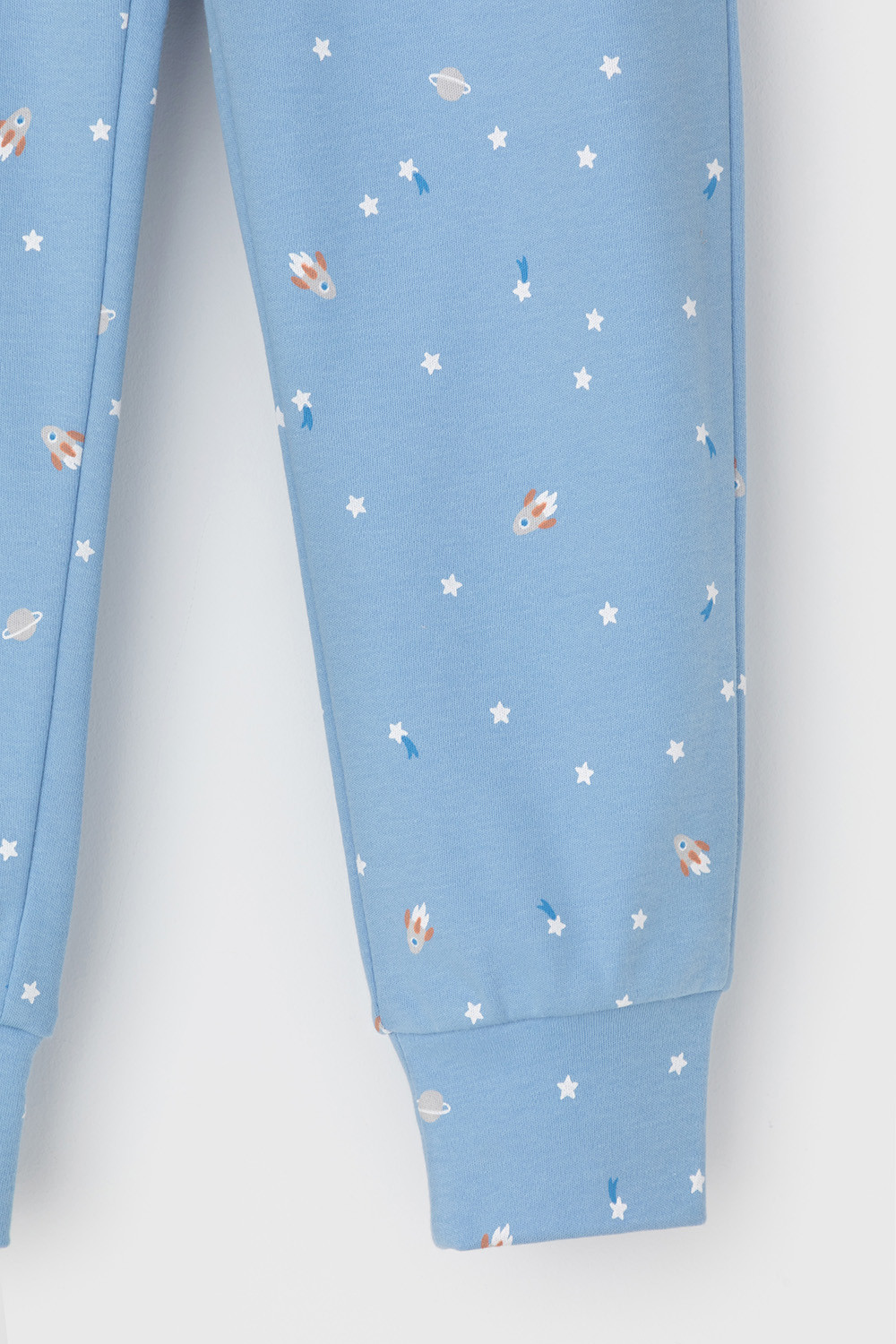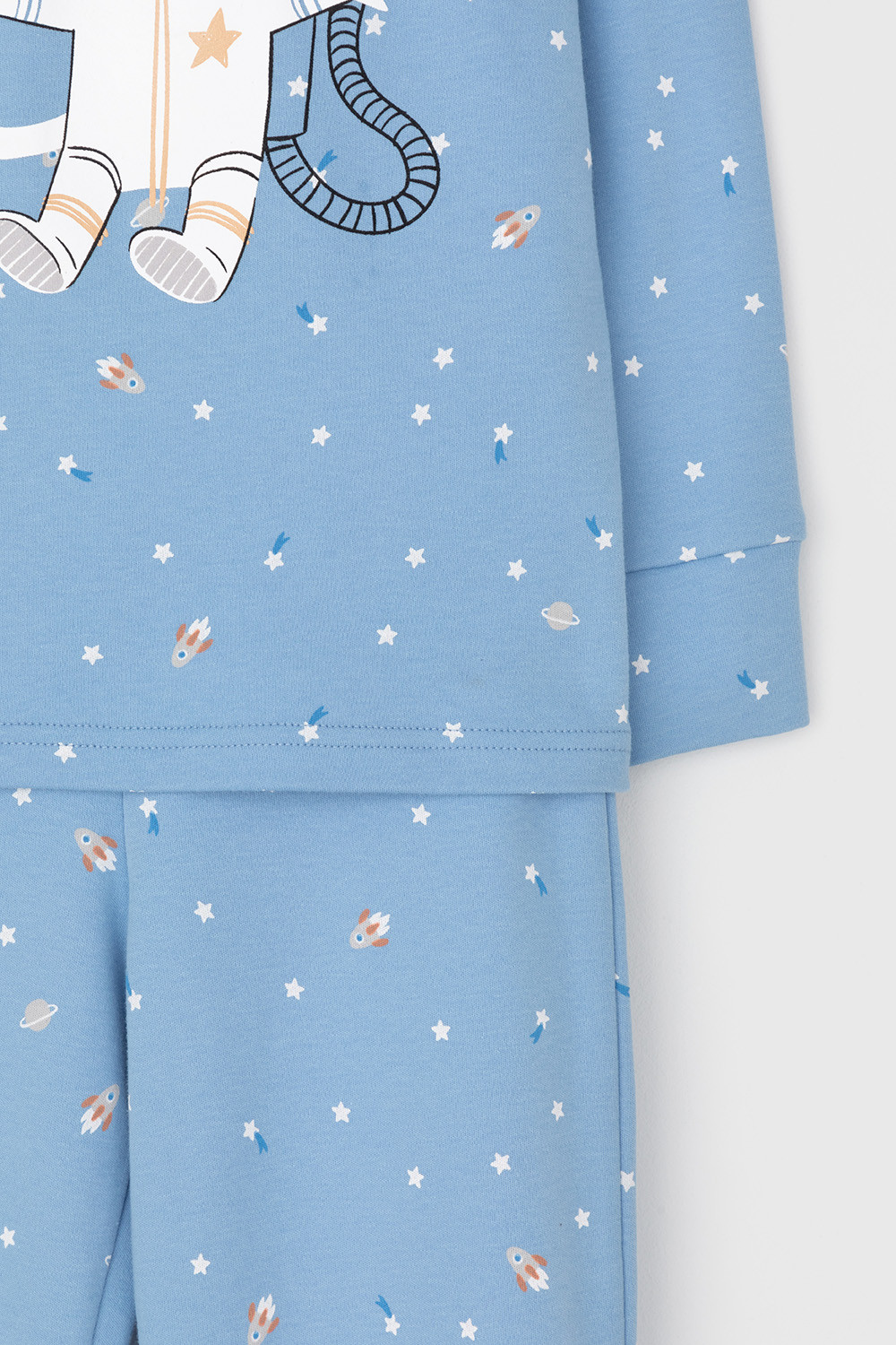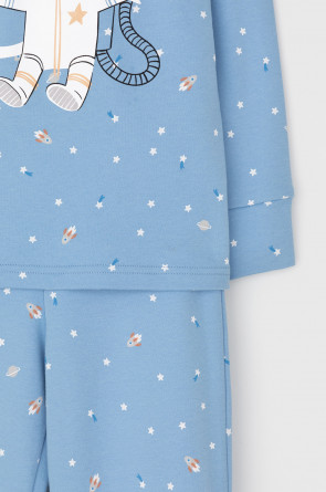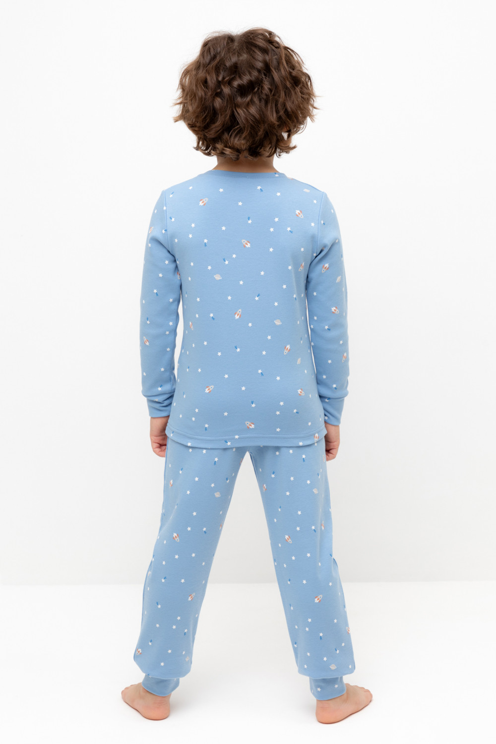 Трикотажная пижама из натурального хлопка. Джемпер с длинными втачными рукавами и брюки с эластичной резинкой в поясе. Мягкие манжеты на рукавах и по низу брюк. Оригинальная набивка и принт выполнены из стойких текстильных гипоаллергенных красителей. Изделие сохраняет цвет и форму после многократных стирок. Все трикотажные полотна производятся в соответсвии с нормами швейцарского сертификата ЭкоТекс.