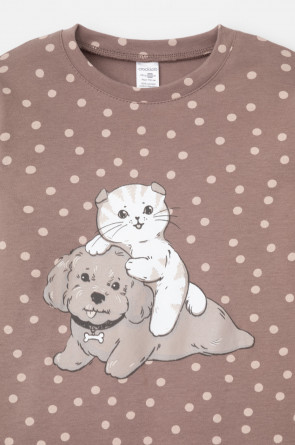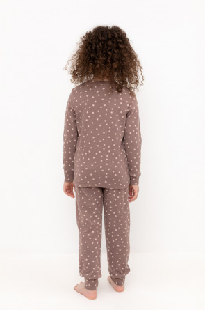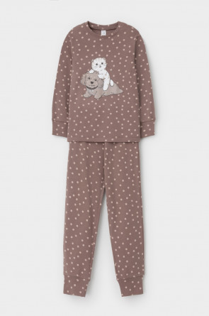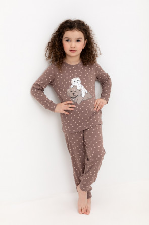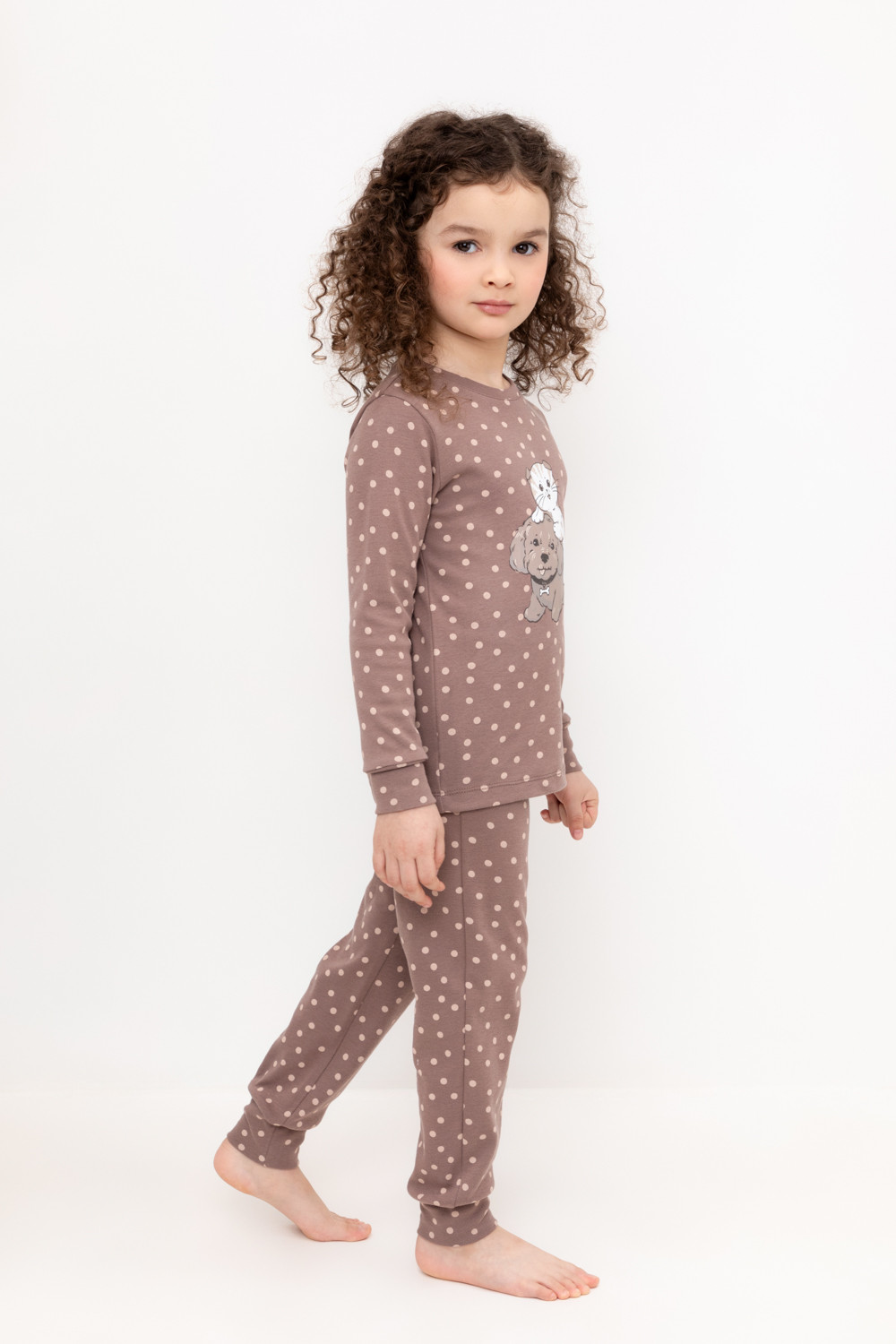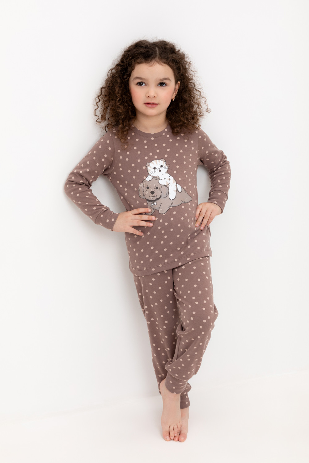 Трикотажная пижама из натурального хлопка. Джемпер с оригинальным принтом и длинными втачными рукавами. У брюк в комплекте мягкий, эластичный пояс на резинке. Оригинальная набивка выполнена из стойких, гипоаллергенных текстильных красителей. Комплект сохраняет цвет и форму после многократных стирок. Все трикотажные полотна производятся в соответсвии с нормами Швейцарского сертификата ЭкоТекс.