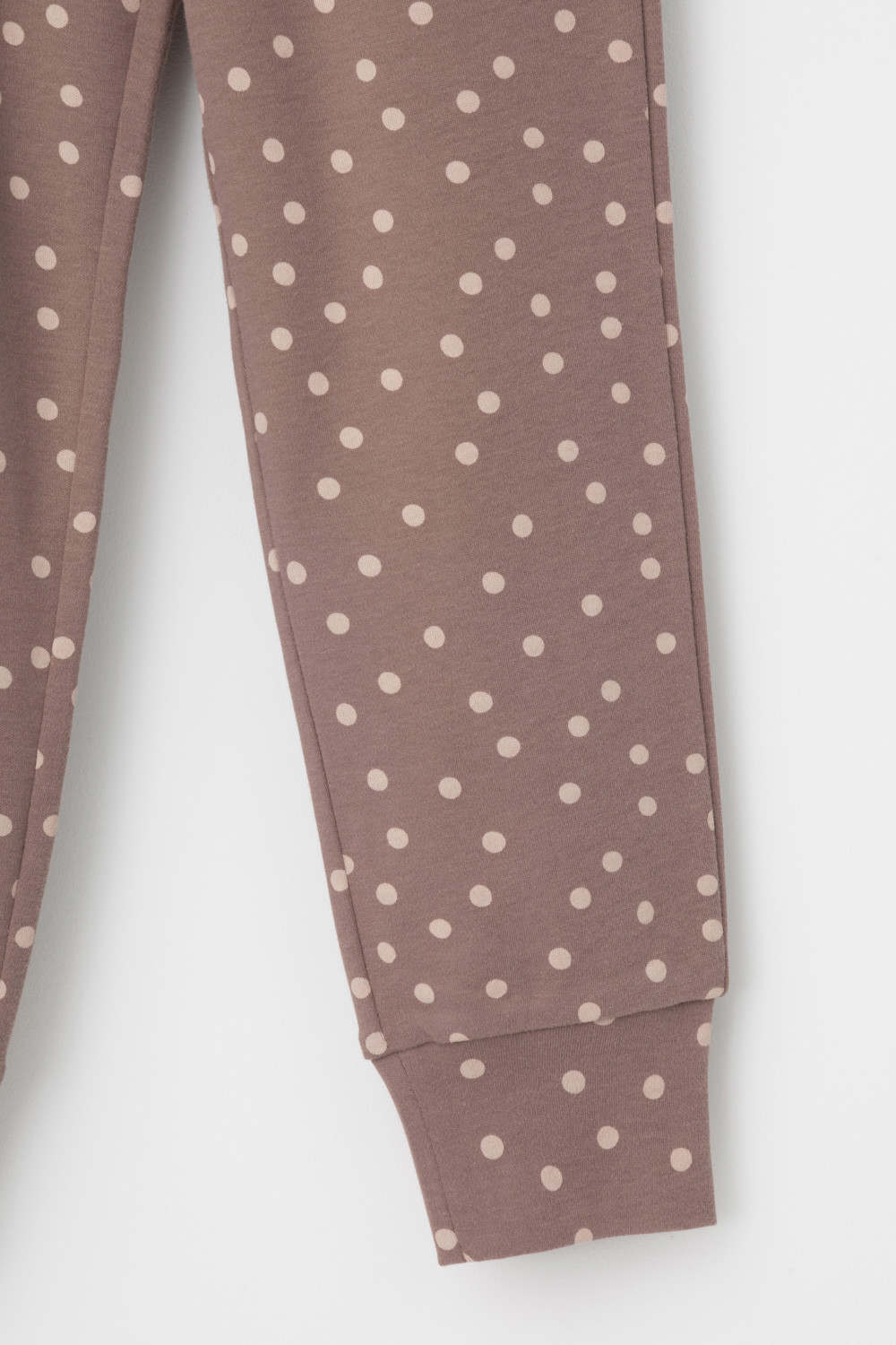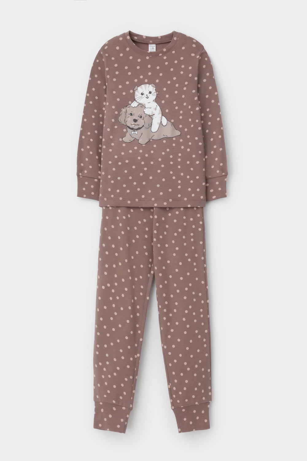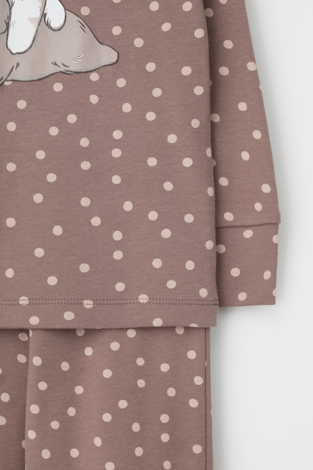 Трикотажная пижама из натурального хлопка. Джемпер с оригинальным принтом и длинными втачными рукавами. У брюк в комплекте мягкий, эластичный пояс на резинке. Оригинальная набивка выполнена из стойких, гипоаллергенных текстильных красителей. Комплект сохраняет цвет и форму после многократных стирок. Все трикотажные полотна производятся в соответсвии с нормами Швейцарского сертификата ЭкоТекс.