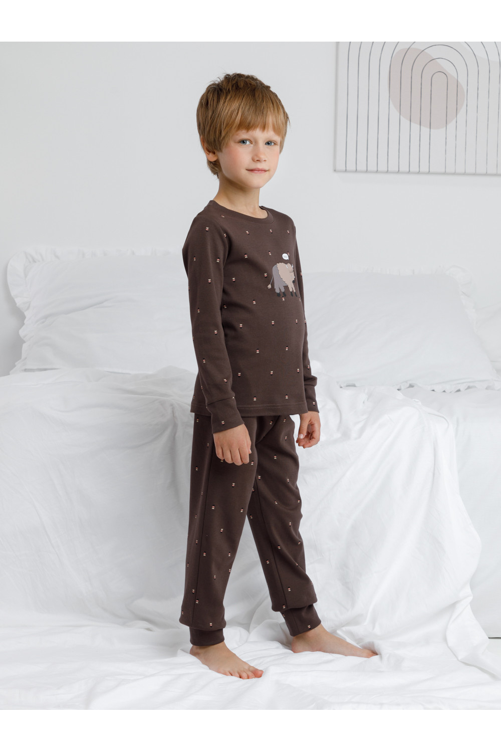 Трикотажная пижама из натурального хлопка. Джемпер с длинными втачными рукавами и брюки с эластичной резинкой в поясе. Мягкие манжеты на рукавах и по низу брюк. Оригинальная набивка и принт выполнены из стойких текстильных гипоаллергенных красителей. Изделие сохраняет цвет и форму после многократных стирок. Все трикотажные полотна производятся в соответствии с нормами швейцарского сертификата ЭкоТекс.