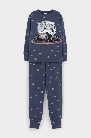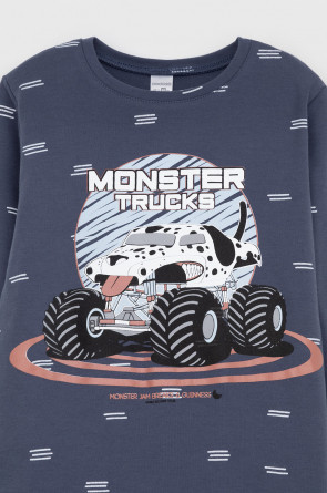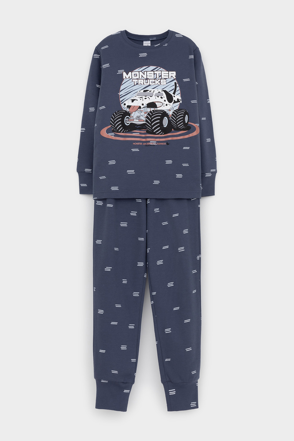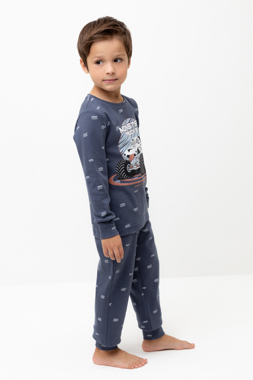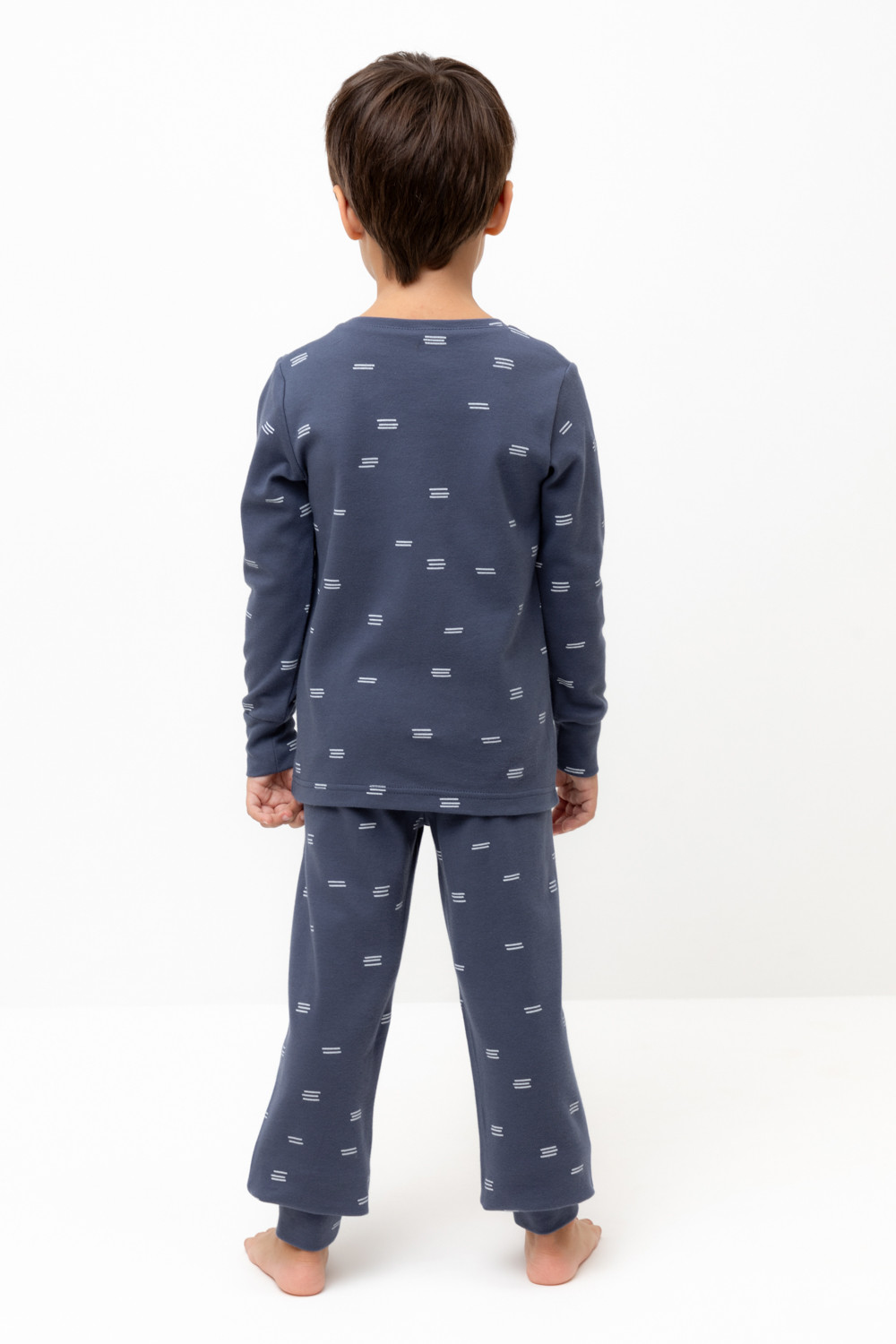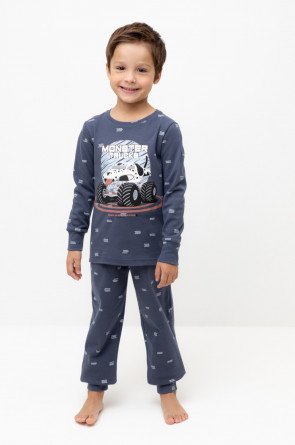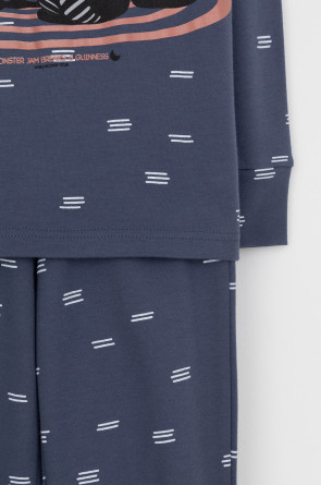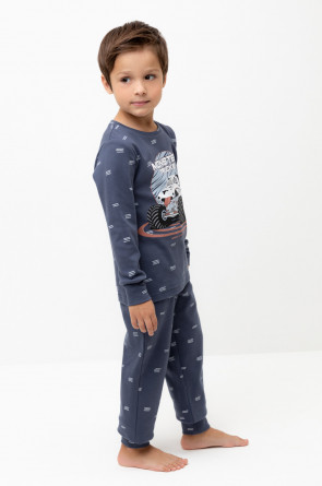 Трикотажная пижама из натурального хлопка. Джемпер с длинными втачными рукавами и брюки с эластичной резинкой в поясе. Мягкие манжеты на рукавах и по низу брюк. Оригинальная набивка и принт выполнены из стойких текстильных гипоаллергенных красителей. Изделие сохраняет цвет и форму после многократных стирок. Все трикотажные полотна производятся в соответсвии с нормами швейцарского сертификата ЭкоТекс.