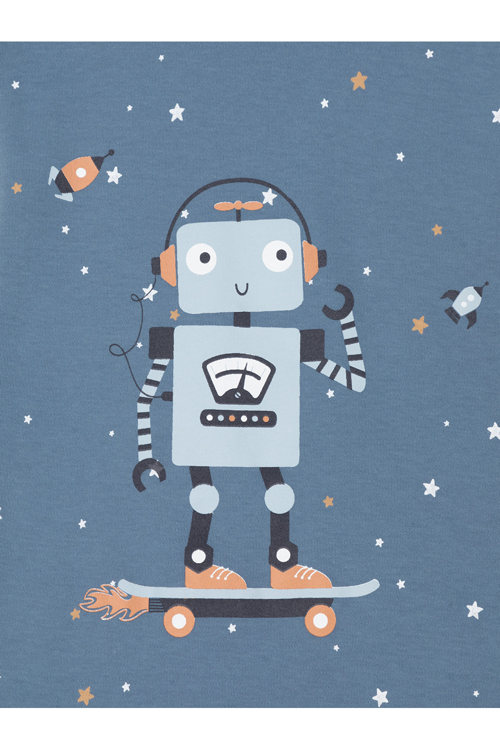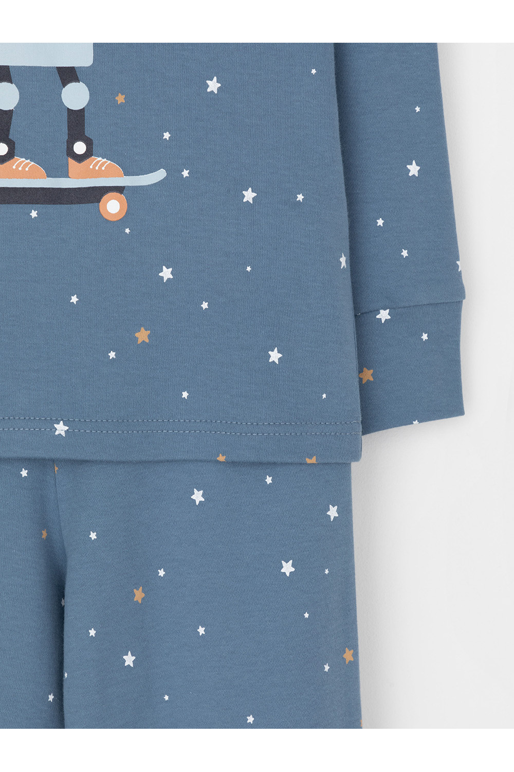 Трикотажная пижама из натурального хлопка. Джемпер с длинными втачными рукавами и брюки с эластичной резинкой в поясе. Мягкие манжеты на рукавах и по низу брюк. Оригинальная набивка и принт выполнены из стойких текстильных гипоаллергенных красителей. Изделие сохраняет цвет и форму после многократных стирок. Все трикотажные полотна производятся в соответсвии с нормами швейцарского сертификата ЭкоТекс.