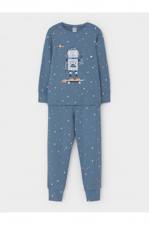 Трикотажная пижама из натурального хлопка. Джемпер с длинными втачными рукавами и брюки с эластичной резинкой в поясе. Мягкие манжеты на рукавах и по низу брюк. Оригинальная набивка и принт выполнены из стойких текстильных гипоаллергенных красителей. Изделие сохраняет цвет и форму после многократных стирок. Все трикотажные полотна производятся в соответсвии с нормами швейцарского сертификата ЭкоТекс.
