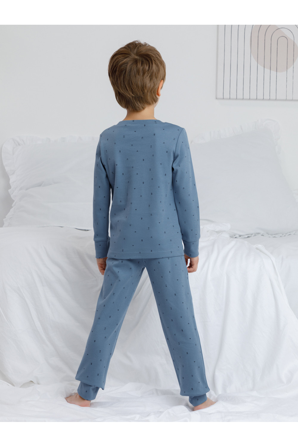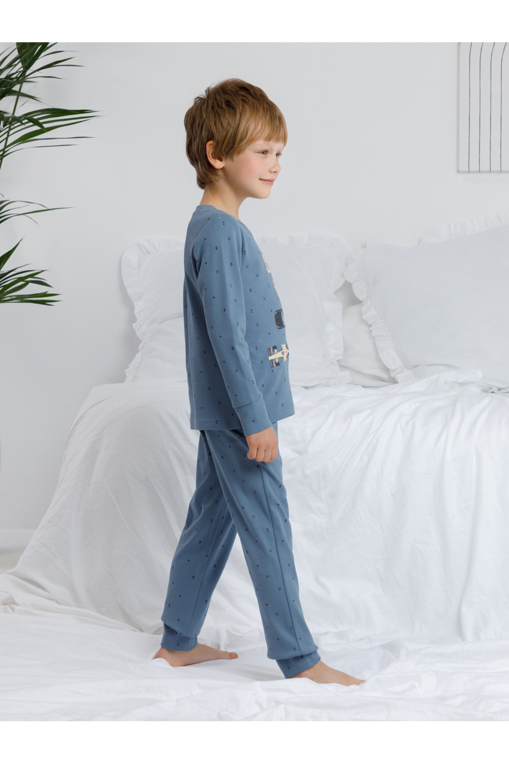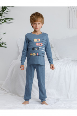 Трикотажная пижама из натурального хлопка. Джемпер с длинными втачными рукавами и брюки с эластичной резинкой в поясе. Мягкие манжеты на рукавах и по низу брюк. Оригинальная набивка и принт выполнены из стойких текстильных гипоаллергенных красителей. Изделие сохраняет цвет и форму после многократных стирок. Все трикотажные полотна производятся в соответствии с нормами швейцарского сертификата ЭкоТекс.