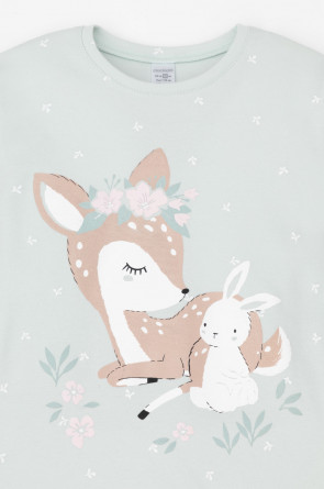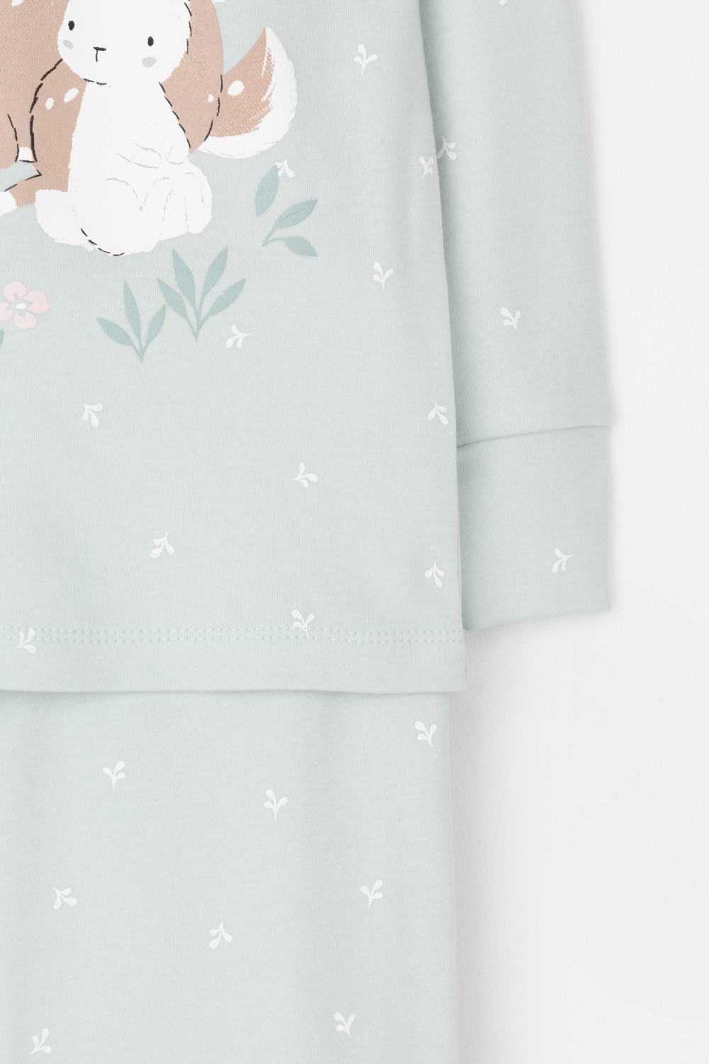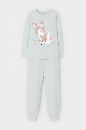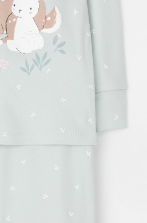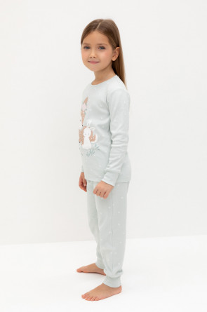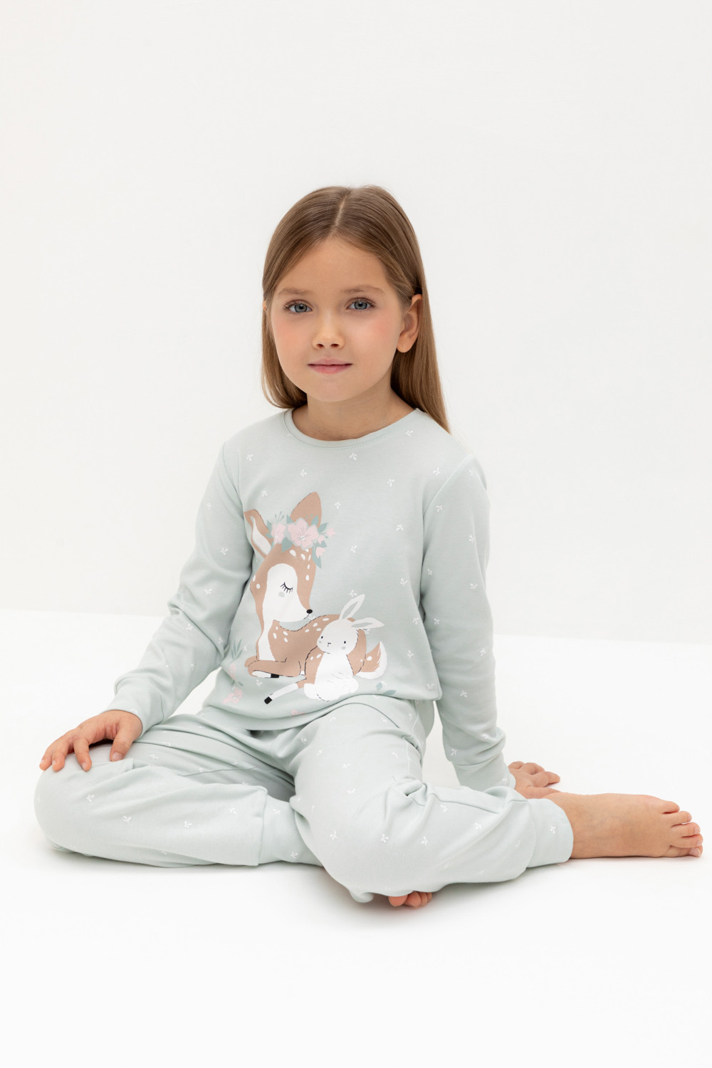 Трикотажная пижама из натурального хлопка. Джемпер с длинными втачными рукавами и брюки с эластичной резинкой в поясе. Мягкие манжеты на рукавах и по низу брюк. Оригинальная набивка и принт выполнены из стойких текстильных гипоаллергенных красителей. Изделие сохраняет цвет и форму после многократных стирок. Все трикотажные полотна производятся в соответствии с нормами швейцарского сертификата ЭкоТекс.