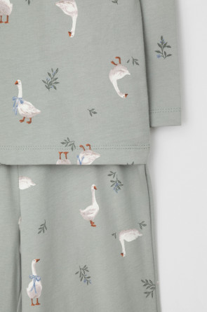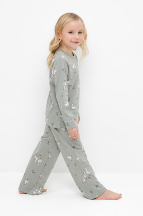 Трикотажная пижама из натурального хлопка. Джемпер с длинными втачными рукавами. У брюк в комплекте мягкий, эластичный пояс на резинке. Оригинальная набивка выполнена из стойких, гипоаллергенных текстильных красителей. Комплект сохраняет цвет и форму после многократных стирок. Все трикотажные полотна производятся в соответсвии с нормами Швейцарского сертификата ЭкоТекс.