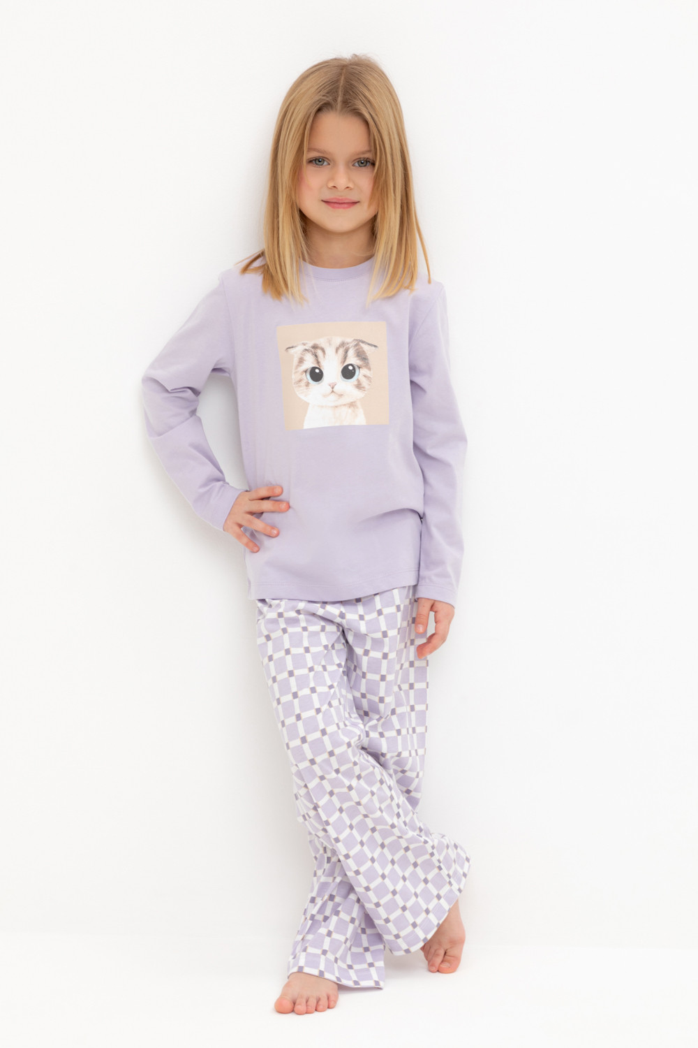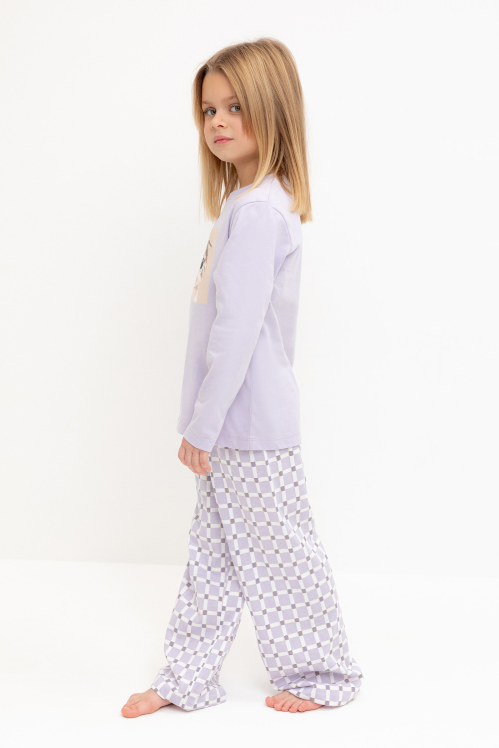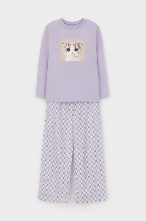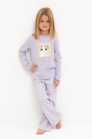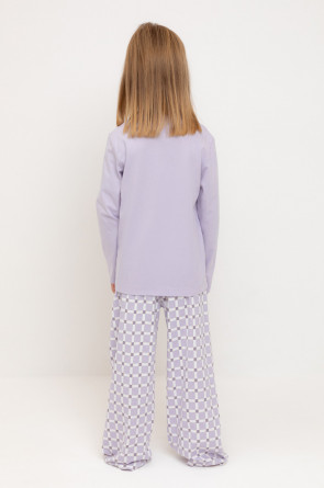 Пижама для девочки из натурального хлопка. Джемпер с длинными втачными рукавами и прямые брюки с эластичной резинкой в поясе. Оригинальная набивка и принт выполнены из стойких текстильных гипоаллергенных красителей. Изделие сохраняет цвет и форму после многократных стирок. Все трикотажные полотна производятся в соответствии с нормами швейцарского сертификата ЭкоТекс.
