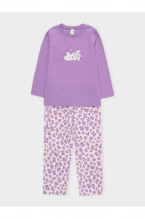 Пижама для девочки из натурального хлопка. Джемпер с длинными втачными рукавами и прямые брюки с эластичной резинкой в поясе. Оригинальная набивка и принт выполнены из стойких текстильных гипоаллергенных красителей. Изделие сохраняет цвет и форму после многократных стирок. Все трикотажные полотна производятся в соответствии с нормами швейцарского сертификата ЭкоТекс.
