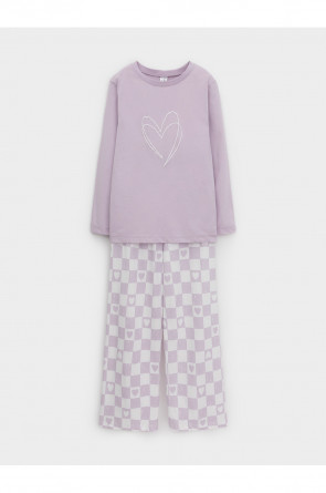 Пижама для девочки из натурального хлопка. Джемпер с длинными втачными рукавами и прямые брюки без бокового шва с эластичной резинкой в поясе. Оригинальная набивка и принт выполнены из стойких текстильных гипоаллергенных красителей. Изделие сохраняет цвет и форму после многократных стирок. Все трикотажные полотна производятся в соответствии с нормами швейцарского сертификата ЭкоТекс.