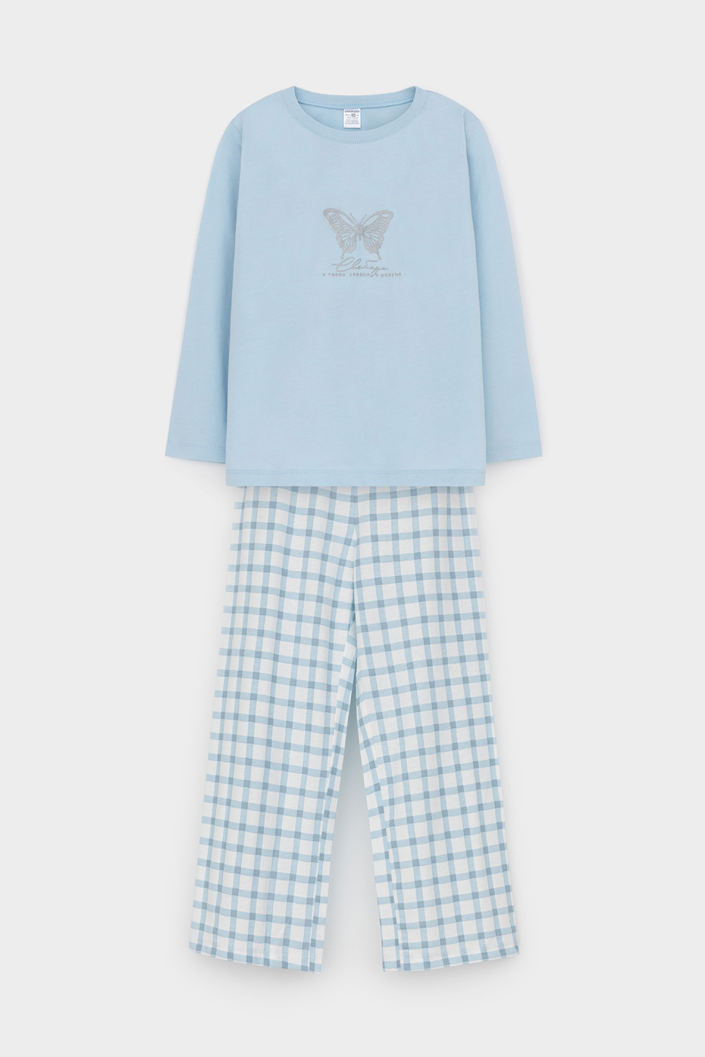 Трикотажная пижама из натурального хлопка. Джемпер с длинными втачными рукавами и прямые брюки с эластичной резинкой в поясе. Оригинальные набивка и принт выполнены из стойких гипоаллергенных текстильных гипоаллергенных красителей. Изделие сохраняет цвет и форму после многократных стирок. Все трикотажные полотна производятся в соответсвии с нормами швейцарского сертификата ЭкоТекс.