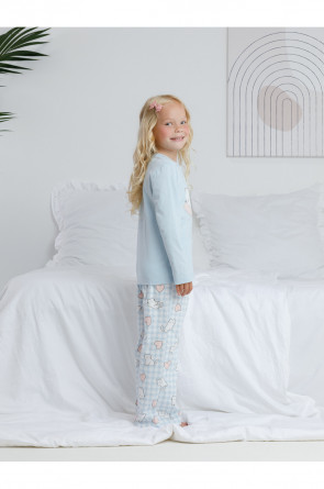 Пижама для девочки из натурального хлопка. Джемпер с длинными втачными рукавами и прямые брюки с эластичной резинкой в поясе. Оригинальная набивка и принт выполнены из стойких текстильных гипоаллергенных красителей. Изделие сохраняет цвет и форму после многократных стирок. Все трикотажные полотна производятся в соответствии с нормами швейцарского сертификата ЭкоТекс.