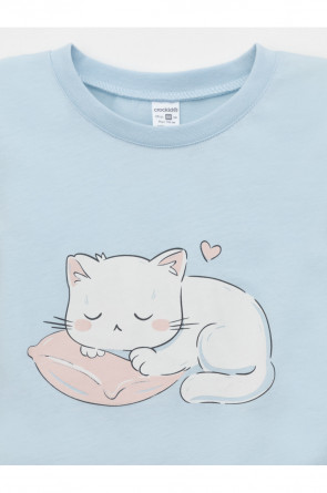 Пижама для девочки из натурального хлопка. Джемпер с длинными втачными рукавами и прямые брюки с эластичной резинкой в поясе. Оригинальная набивка и принт выполнены из стойких текстильных гипоаллергенных красителей. Изделие сохраняет цвет и форму после многократных стирок. Все трикотажные полотна производятся в соответствии с нормами швейцарского сертификата ЭкоТекс.