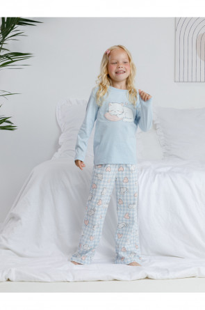 Пижама для девочки из натурального хлопка. Джемпер с длинными втачными рукавами и прямые брюки с эластичной резинкой в поясе. Оригинальная набивка и принт выполнены из стойких текстильных гипоаллергенных красителей. Изделие сохраняет цвет и форму после многократных стирок. Все трикотажные полотна производятся в соответствии с нормами швейцарского сертификата ЭкоТекс.
