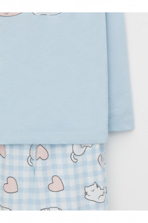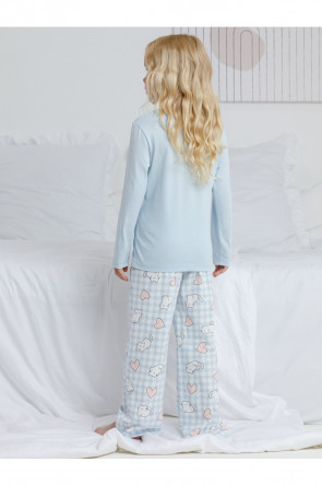 Пижама для девочки из натурального хлопка. Джемпер с длинными втачными рукавами и прямые брюки с эластичной резинкой в поясе. Оригинальная набивка и принт выполнены из стойких текстильных гипоаллергенных красителей. Изделие сохраняет цвет и форму после многократных стирок. Все трикотажные полотна производятся в соответствии с нормами швейцарского сертификата ЭкоТекс.