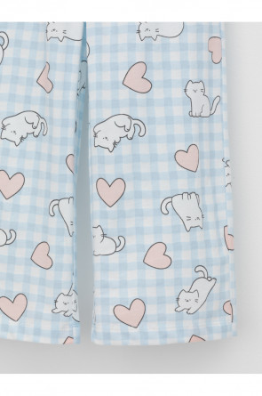 Пижама для девочки из натурального хлопка. Джемпер с длинными втачными рукавами и прямые брюки с эластичной резинкой в поясе. Оригинальная набивка и принт выполнены из стойких текстильных гипоаллергенных красителей. Изделие сохраняет цвет и форму после многократных стирок. Все трикотажные полотна производятся в соответствии с нормами швейцарского сертификата ЭкоТекс.