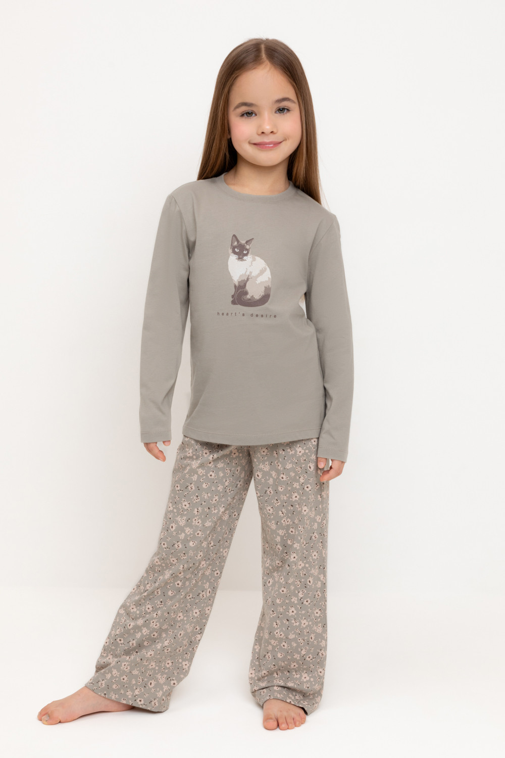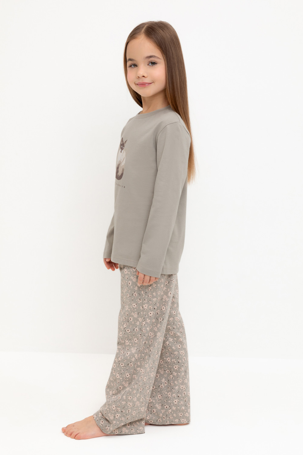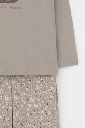 Трикотажная пижама из натурального хлопка. Джемпер с длинными втачными рукавами и прямые брюки с эластичной резинкой в поясе. Оригинальные набивка и принт выполнены из стойких гипоаллергенных текстильных гипоаллергенных красителей. Изделие сохраняет цвет и форму после многократных стирок. Все трикотажные полотна производятся в соответсвии с нормами швейцарского сертификата ЭкоТекс.