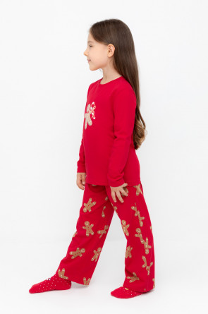 Трикотажная пижама из натурального хлопка. Джемпер с принтом и длинными втачными рукавами. У брюк в комплекте мягкий, эластичный пояс на резинке. Оригинальная набивка выполнена из стойких, гипоаллергенных текстильных красителей. Комплект сохраняет цвет и форму после многократных стирок. Все трикотажные полотна производятся в соответсвии с нормами Швейцарского сертификата ЭкоТекс.