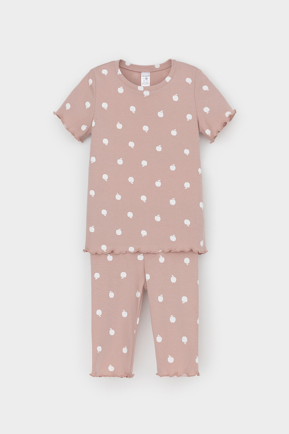 Трикотажная пижама в рубчик из натурального хлопка. Футболка с короткими втачными рукавами и шорты с эластичной резинкой в поясе. Оригинальная набивка выполнена из стойких текстильных гипоаллергенных красителей. Изделие сохраняет цвет и форму после многократных стирок. Все трикотажные полотна производятся в соответсвии с нормами швейцарского сертификата ЭкоТекс.
