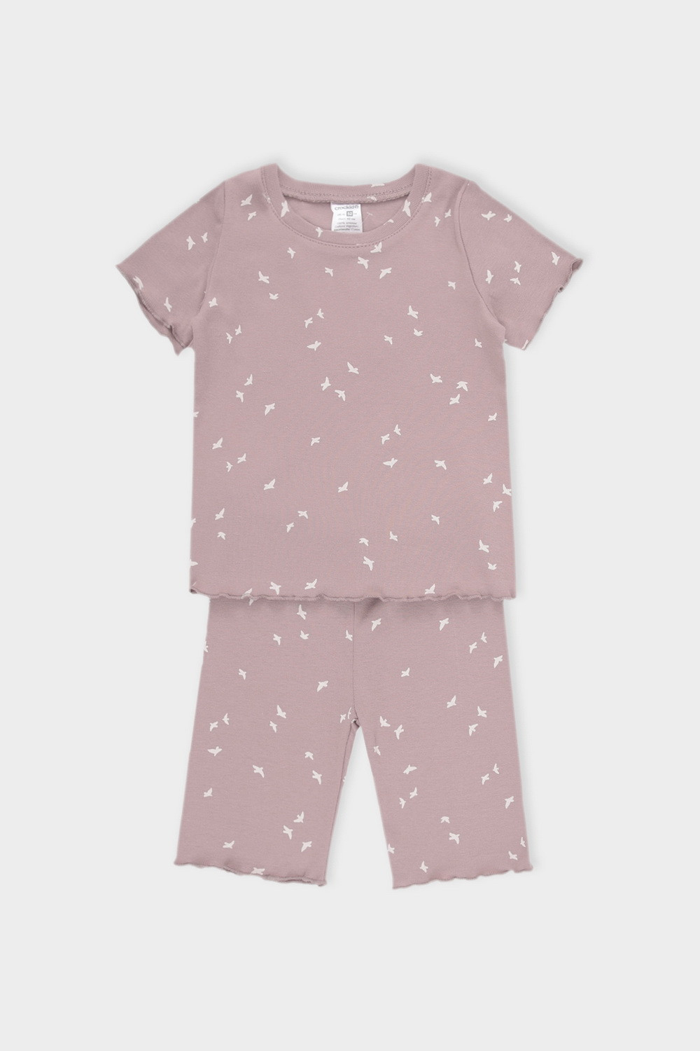 Трикотажная пижама из натурального хлопка . Футболка с короткими втачными рукавами. У шорт в комплекте мягкий, эластичный пояс на резинке. Оригинальная набивка выполнена из стойких, гипоаллергенных текстильных красителей. Комплект сохраняет цвет и форму после многократных стирок. Все трикотажные полотна производятся в соответсвии с нормами Швейцарского сертификата ЭкоТекс.