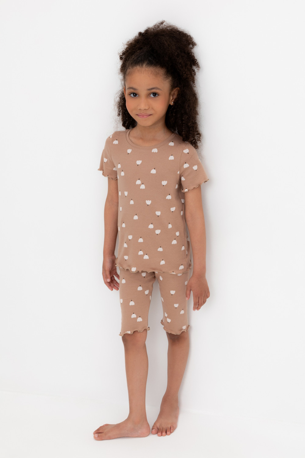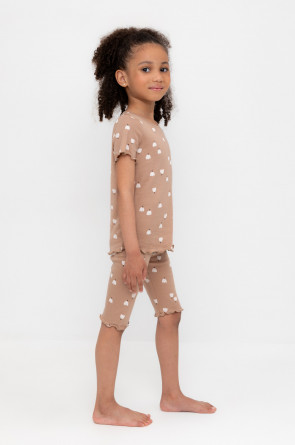 Трикотажная пижама из натурального хлопка . Футболка с короткими втачными рукавами. У шорт в комплекте мягкий, эластичный пояс на резинке. Оригинальная набивка выполнена из стойких, гипоаллергенных текстильных красителей. Комплект сохраняет цвет и форму после многократных стирок. Все трикотажные полотна производятся в соответсвии с нормами Швейцарского сертификата ЭкоТекс.