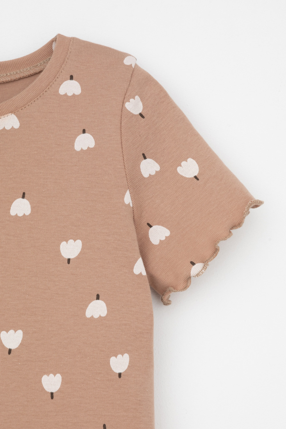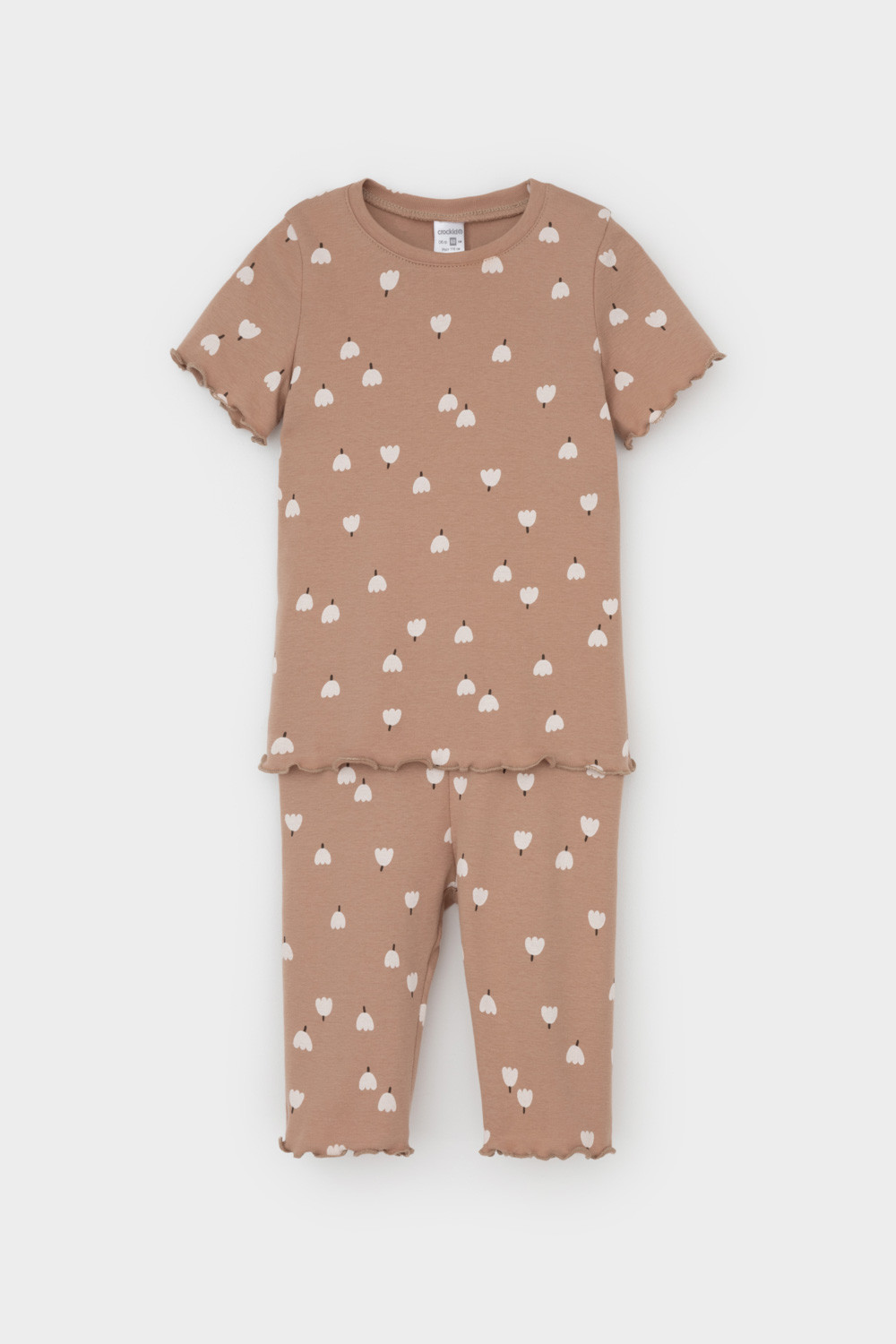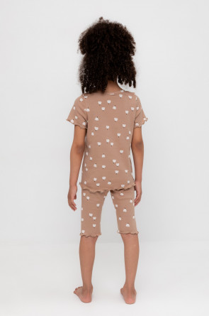 Трикотажная пижама из натурального хлопка . Футболка с короткими втачными рукавами. У шорт в комплекте мягкий, эластичный пояс на резинке. Оригинальная набивка выполнена из стойких, гипоаллергенных текстильных красителей. Комплект сохраняет цвет и форму после многократных стирок. Все трикотажные полотна производятся в соответсвии с нормами Швейцарского сертификата ЭкоТекс.