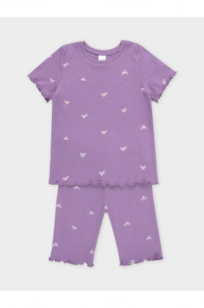 Трикотажная пижама в рубчик из натурального хлопка. Футболка с короткими втачными рукавами и шорты с эластичной резинкой в поясе. Оригинальная набивка выполнена из стойких текстильных гипоаллергенных красителей. Изделие сохраняет цвет и форму после многократных стирок. Все трикотажные полотна производятся в соответсвии с нормами швейцарского сертификата ЭкоТекс.