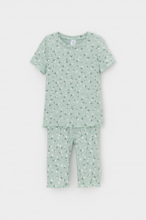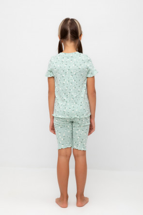 Трикотажная пижама из натурального хлопка . Футболка с короткими втачными рукавами. У шорт в комплекте мягкий, эластичный пояс на резинке. Оригинальная набивка выполнена из стойких, гипоаллергенных текстильных красителей. Комплект сохраняет цвет и форму после многократных стирок. Все трикотажные полотна производятся в соответсвии с нормами Швейцарского сертификата ЭкоТекс.