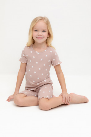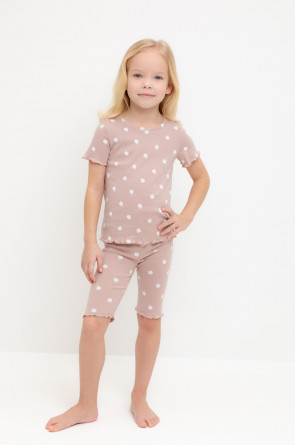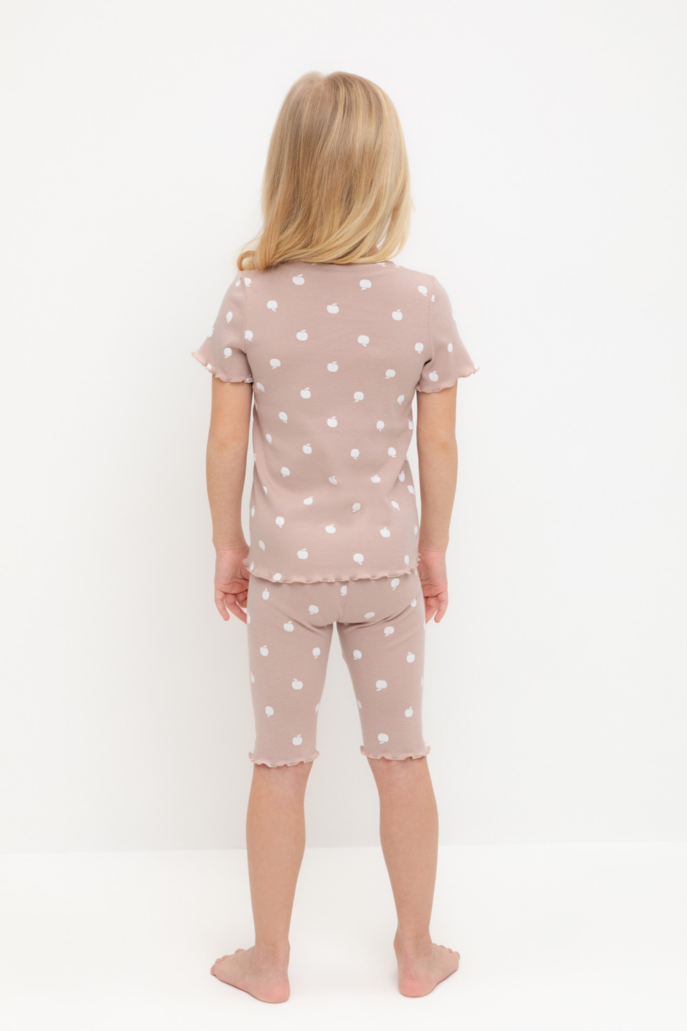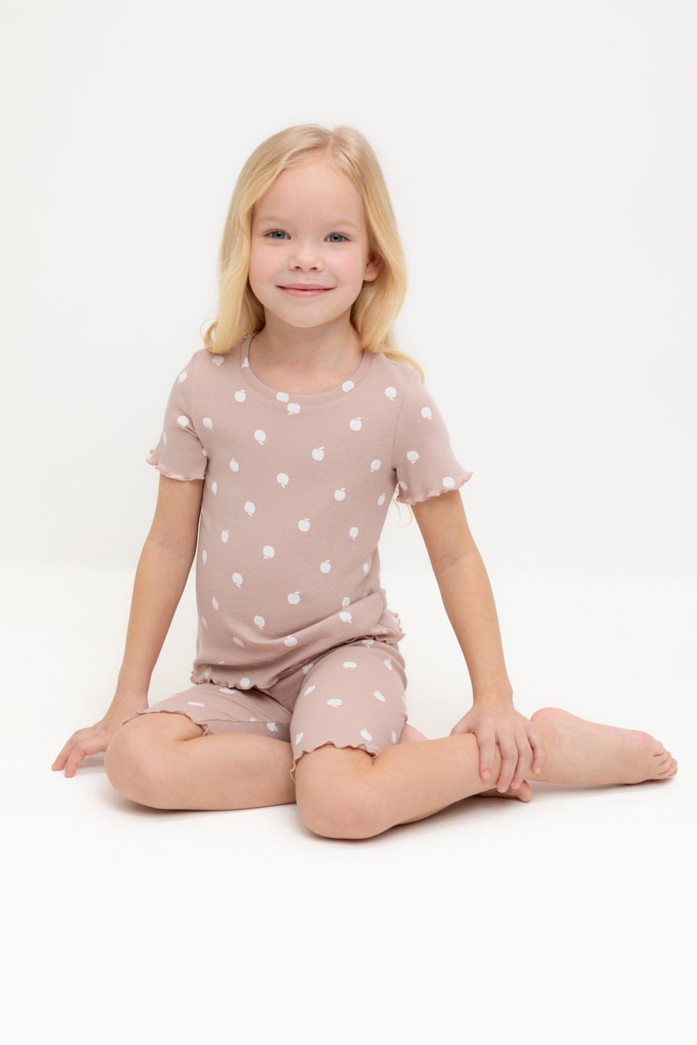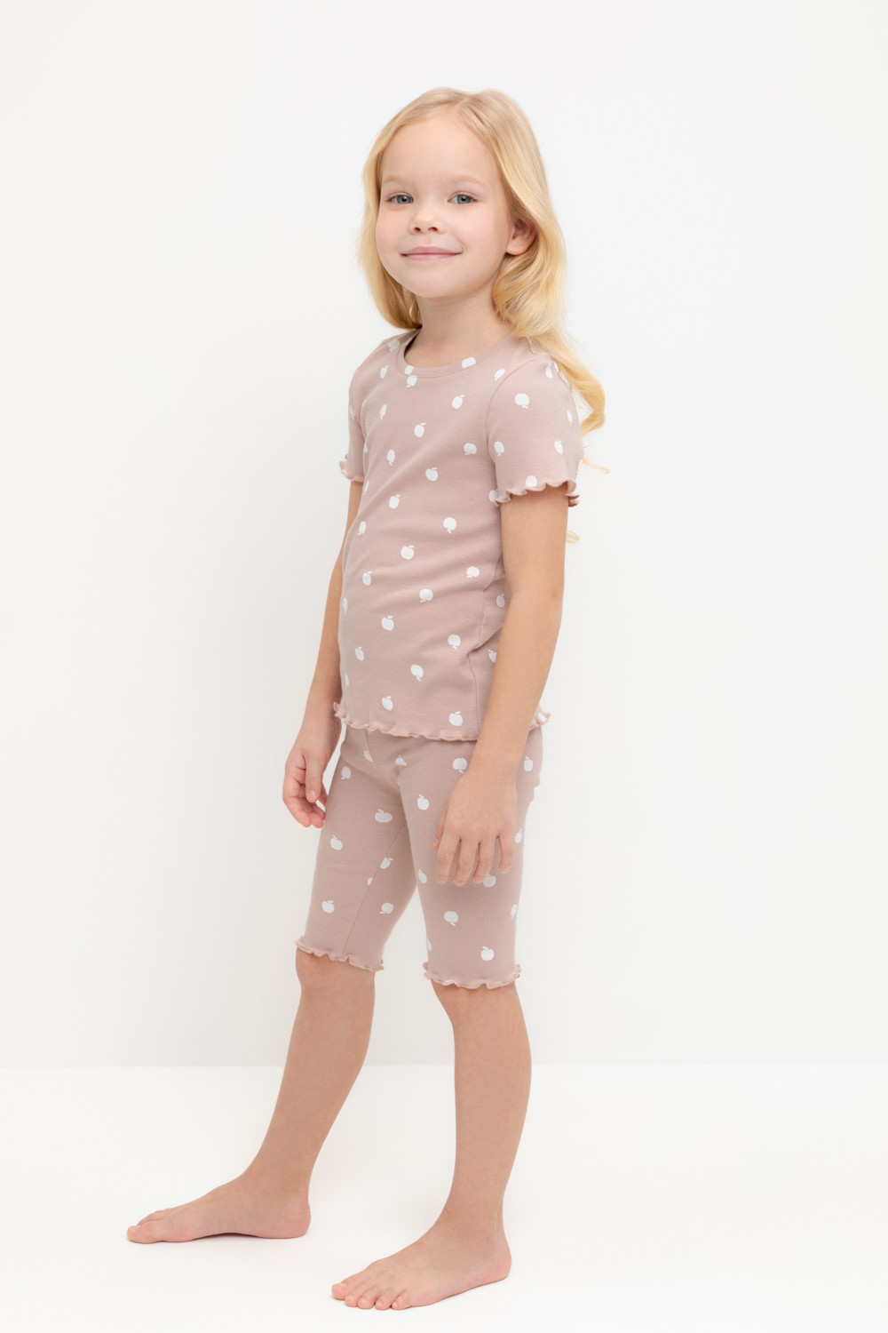 Трикотажная пижама в рубчик из натурального хлопка. Футболка с короткими втачными рукавами и шорты с эластичной резинкой в поясе. Оригинальная набивка выполнена из стойких текстильных гипоаллергенных красителей. Изделие сохраняет цвет и форму после многократных стирок. Все трикотажные полотна производятся в соответсвии с нормами швейцарского сертификата ЭкоТекс.
