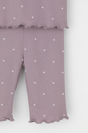 Трикотажная пижама в рубчик из натурального хлопка. Футболка с короткими втачными рукавами и шорты с эластичной резинкой в поясе. Оригинальная набивка выполнена из стойких текстильных гипоаллергенных красителей. Изделие сохраняет цвет и форму после многократных стирок. Все трикотажные полотна производятся в соответсвии с нормами швейцарского сертификата ЭкоТекс.