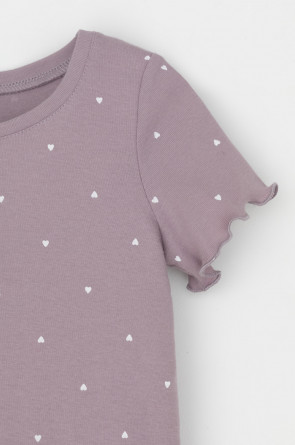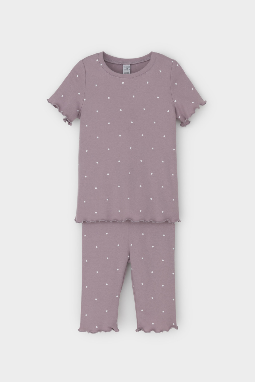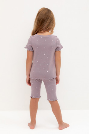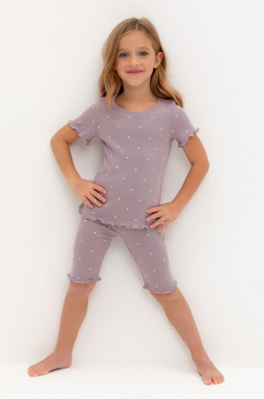 Трикотажная пижама в рубчик из натурального хлопка. Футболка с короткими втачными рукавами и шорты с эластичной резинкой в поясе. Оригинальная набивка выполнена из стойких текстильных гипоаллергенных красителей. Изделие сохраняет цвет и форму после многократных стирок. Все трикотажные полотна производятся в соответсвии с нормами швейцарского сертификата ЭкоТекс.