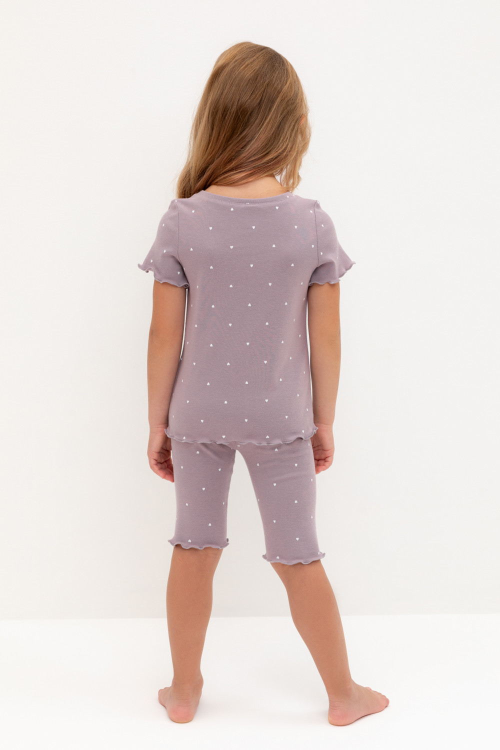 Трикотажная пижама в рубчик из натурального хлопка. Футболка с короткими втачными рукавами и шорты с эластичной резинкой в поясе. Оригинальная набивка выполнена из стойких текстильных гипоаллергенных красителей. Изделие сохраняет цвет и форму после многократных стирок. Все трикотажные полотна производятся в соответсвии с нормами швейцарского сертификата ЭкоТекс.
