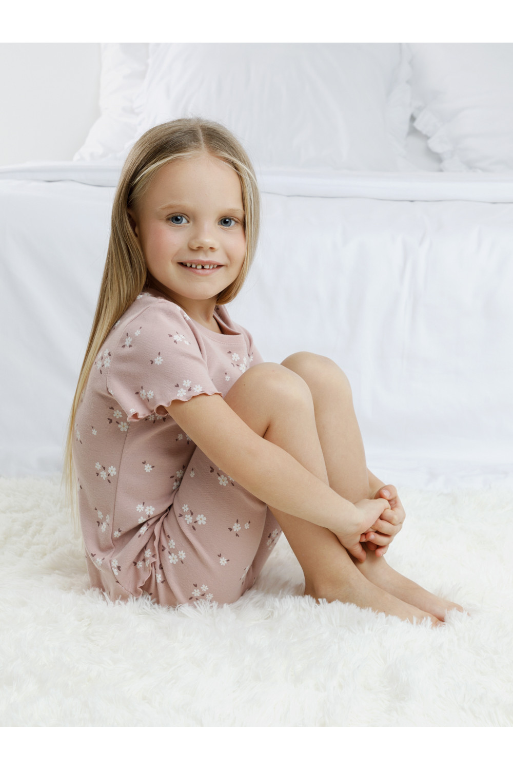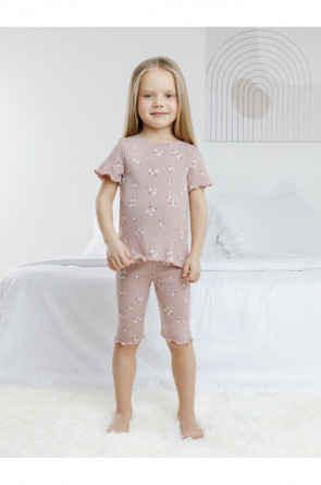 Трикотажная пижама в рубчик из натурального хлопка. Футболка с короткими втачными рукавами и шорты с эластичной резинкой в поясе. Оригинальная набивка выполнена из стойких текстильных гипоаллергенных красителей. Изделие сохраняет цвет и форму после многократных стирок. Все трикотажные полотна производятся в соответсвии с нормами швейцарского сертификата ЭкоТекс.