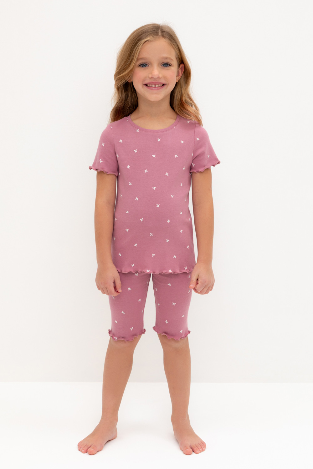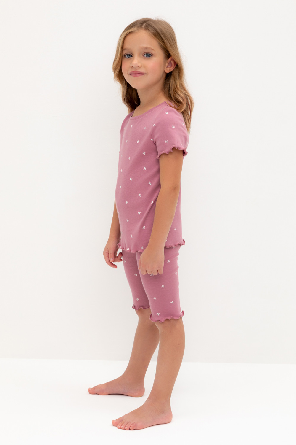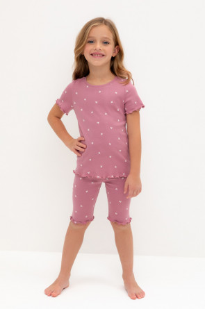 Трикотажная пижама в рубчик из натурального хлопка. Футболка с короткими втачными рукавами и шорты с эластичной резинкой в поясе. Оригинальная набивка выполнена из стойких текстильных гипоаллергенных красителей. Изделие сохраняет цвет и форму после многократных стирок. Все трикотажные полотна производятся в соответствии с нормами швейцарского сертификата ЭкоТекс.