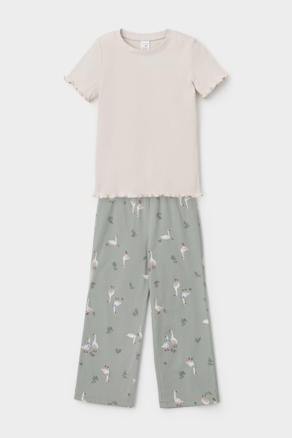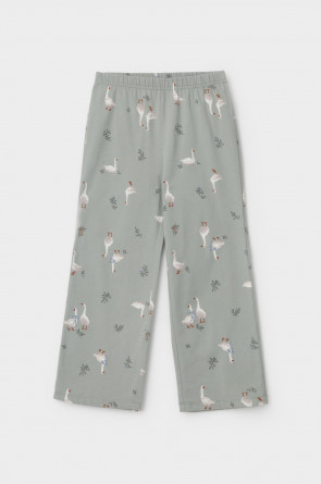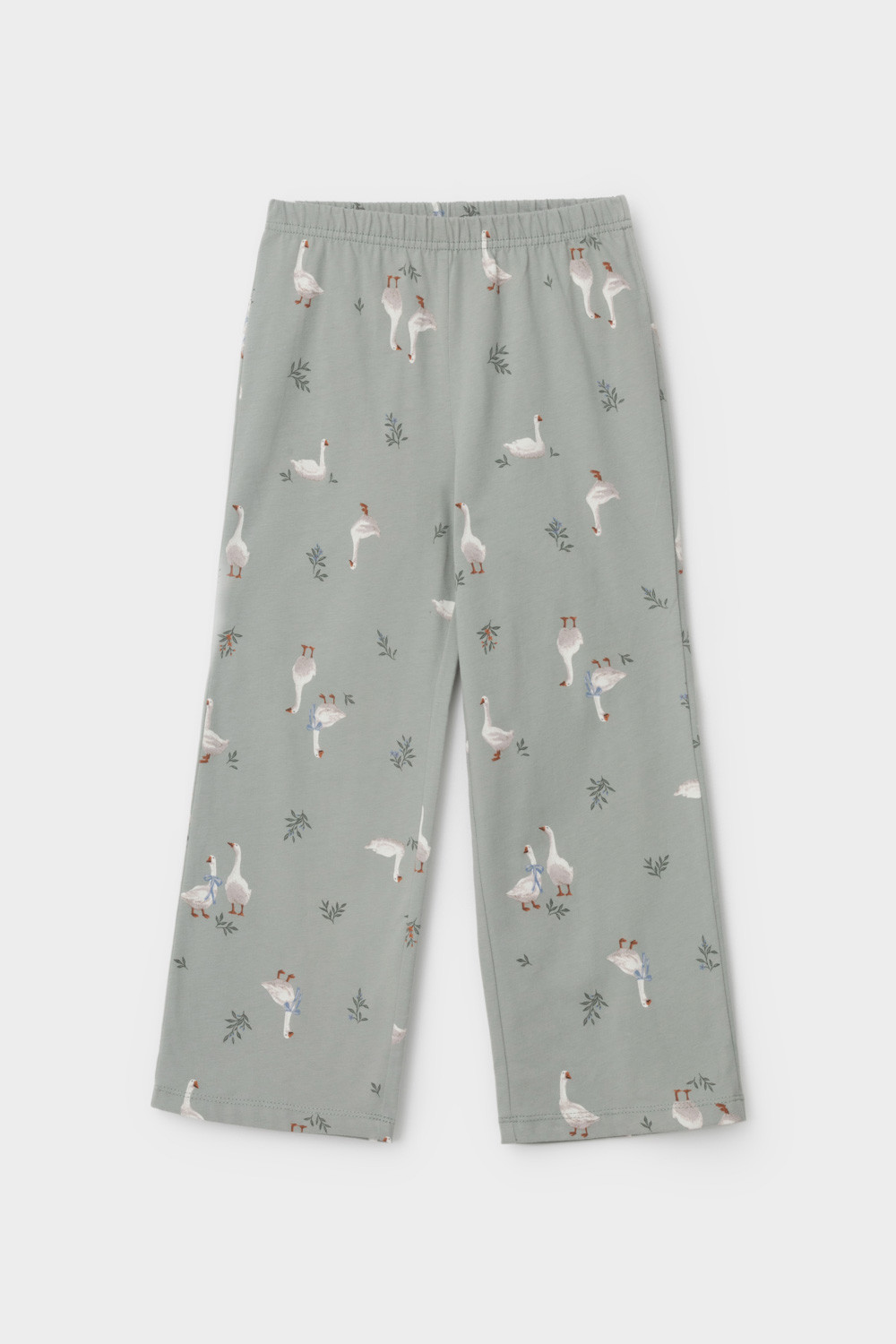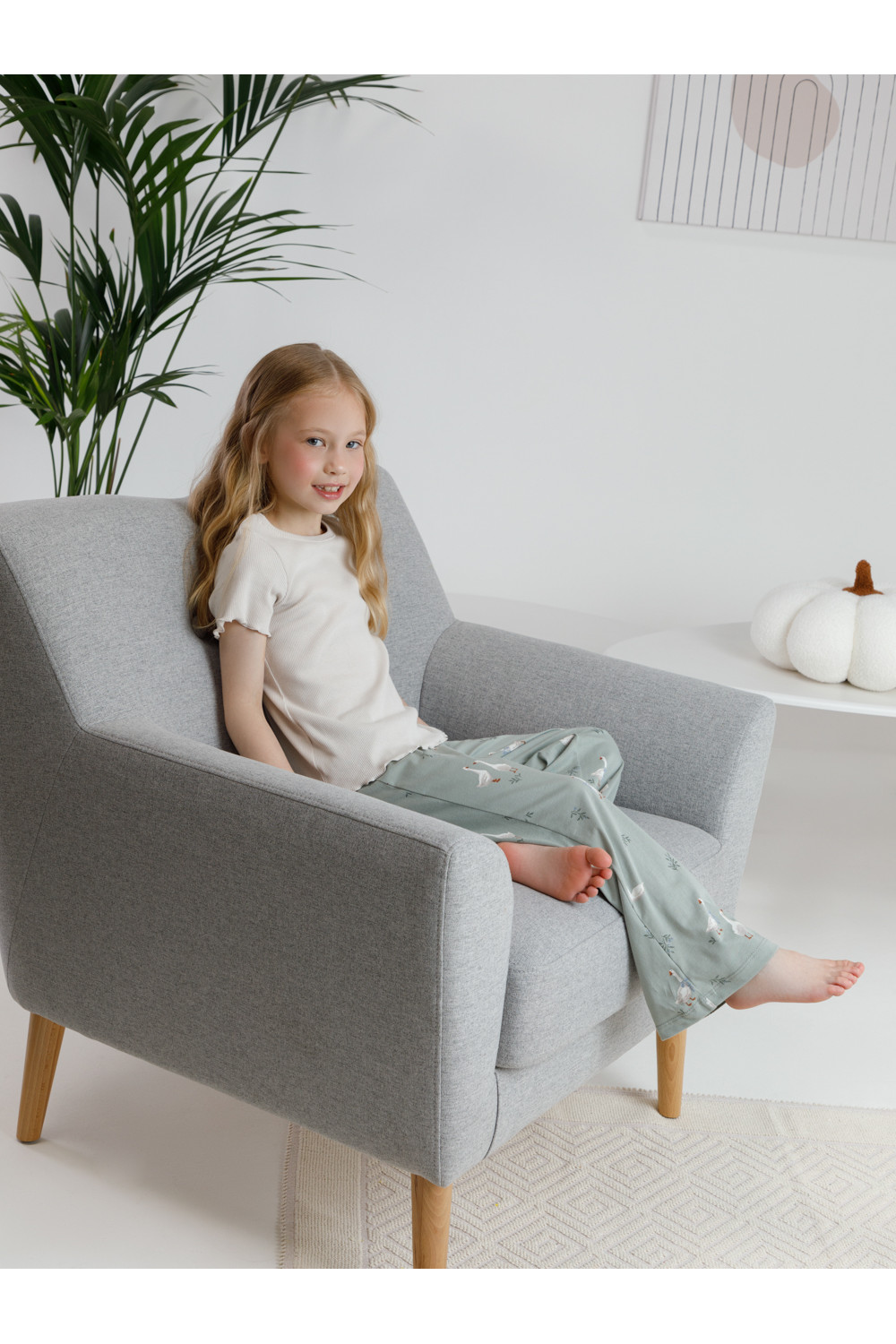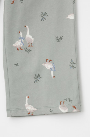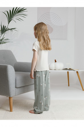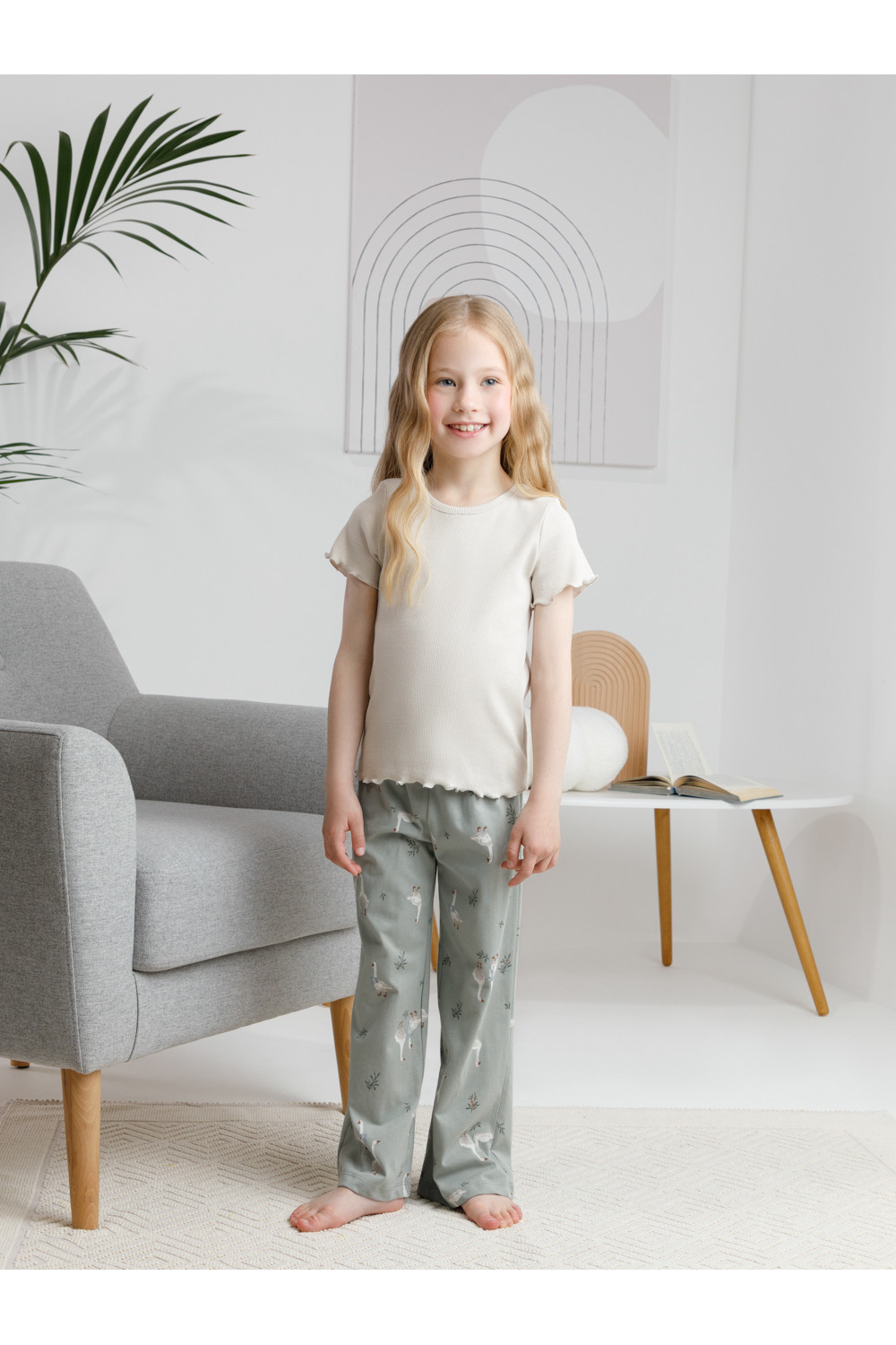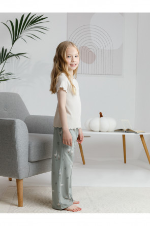 Трикотажная пижама из натурального хлопка. Футболка с короткими втачными рукавами. У футболки рукава и низ изделия обработаны микрооверлоком У брюк в комплекте мягкий, эластичный пояс на резинке. Оригинальная набивка выполнена из стойких, гипоаллергенных текстильных красителей. Комплект сохраняет цвет и форму после многократных стирок. Все трикотажные полотна производятся в соответсвии с нормами Швейцарского сертификата ЭкоТекс.