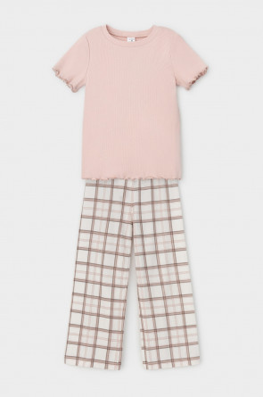 Трикотажная пижама из натурального хлопка. Футболка с короткими втачными рукавами. У футболки рукава и низ изделия обработаны микрооверлоком У брюк в комплекте мягкий, эластичный пояс на резинке. Оригинальная набивка выполнена из стойких, гипоаллергенных текстильных красителей. Комплект сохраняет цвет и форму после многократных стирок. Все трикотажные полотна производятся в соответсвии с нормами Швейцарского сертификата ЭкоТекс.