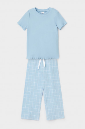 Трикотажная пижама из натурального хлопка. Футболка с короткими втачными рукавами. У футболки рукава и низ изделия обработаны микрооверлоком У брюк в комплекте мягкий, эластичный пояс на резинке. Оригинальная набивка выполнена из стойких, гипоаллергенных текстильных красителей. Комплект сохраняет цвет и форму после многократных стирок. Все трикотажные полотна производятся в соответсвии с нормами Швейцарского сертификата ЭкоТекс.
