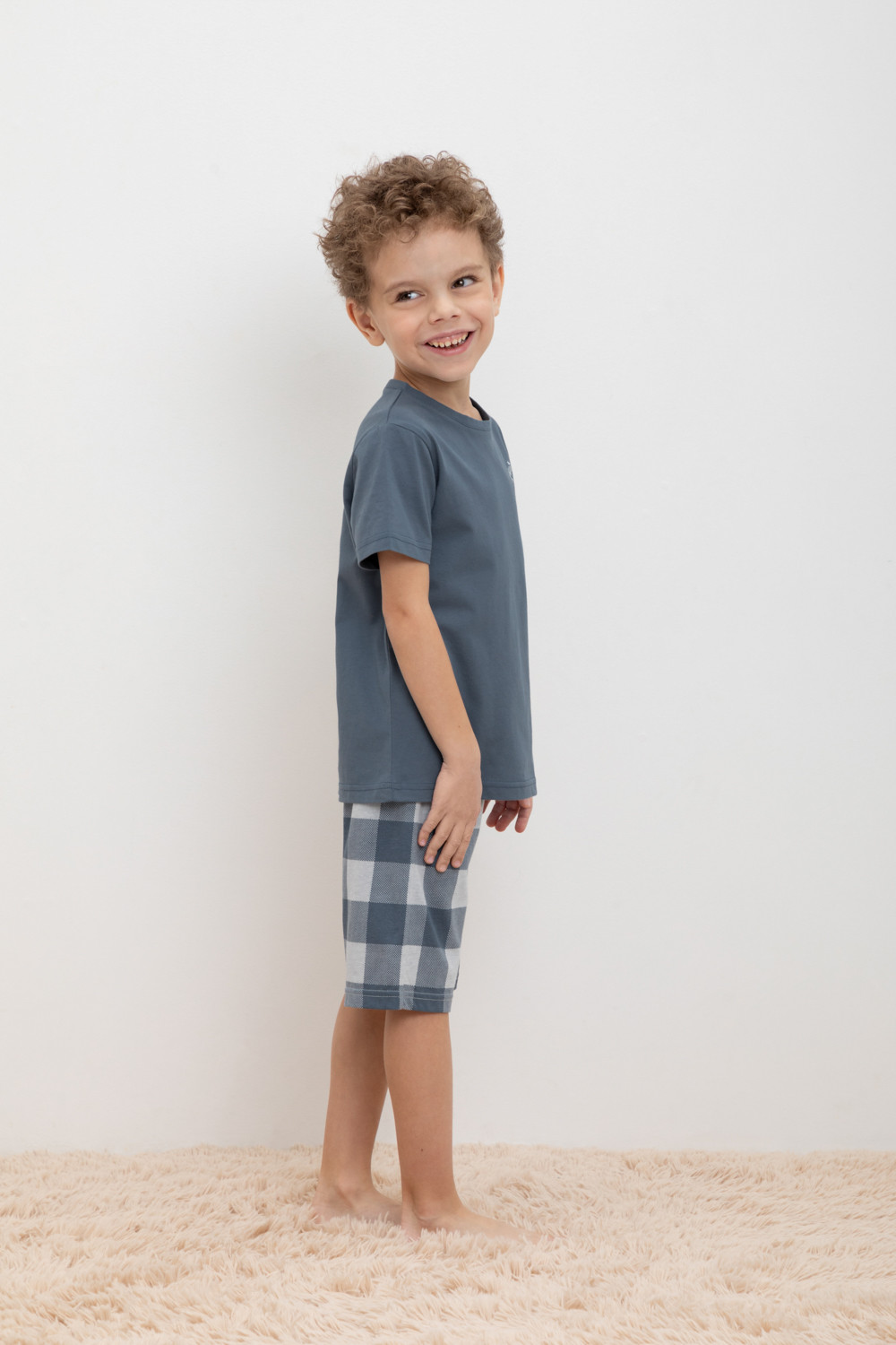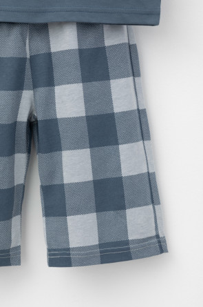 Трикотажная пижама из натурального хлопка. Футболка с короткими рукавами с принтом. У шорт эластичный пояс на резинке, регулируется с помощью шнура. Оригинальная набивка выполнена из стойких, гипоаллергенных текстильных красителей. Пижама сохраняет цвет и форму после многократных стирок. Все трикотажные полотна производятся в соответсвии с нормами Швейцарского сертификата ЭкоТекс.
