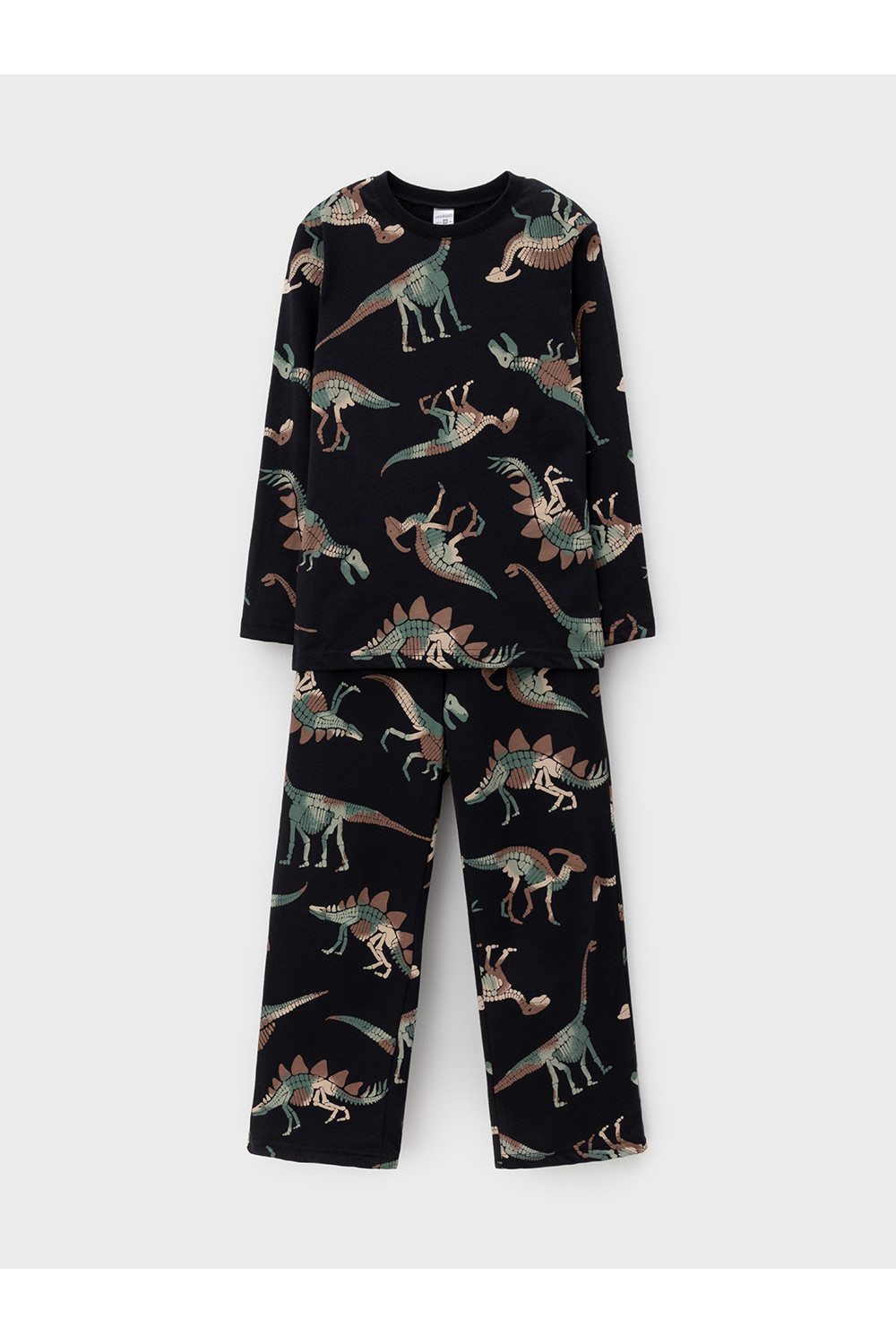 Трикотажная пижама из натурального хлопка. Джемпер с длинными рукавами. У брюк эластичный пояс на резинке. Оригинальная набивка выполнена из стойких, гипоаллергенных текстильных красителей. Пижама сохраняет цвет и форму после многократных стирок. Все трикотажные полотна производятся в соответсвии с нормами Швейцарского сертификата ЭкоТекс.