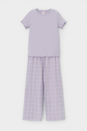 Трикотажная пижама из натурального хлопка. Футболка с короткими втачными рукавами. У футболки рукава и низ изделия обработаны микрооверлоком У брюк в комплекте мягкий, эластичный пояс на резинке. Оригинальная набивка выполнена из стойких, гипоаллергенных текстильных красителей. Комплект сохраняет цвет и форму после многократных стирок. Все трикотажные полотна производятся в соответсвии с нормами Швейцарского сертификата ЭкоТекс.