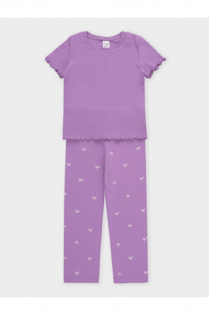 Трикотажная пижама из натурального хлопка. Футболка с короткими втачными рукавами изготовлена из эластичного трикотажа в рубчик. Брюки с эластичной резинкой в поясе выполнены из гладкого трикотажа супрем. Оригинальная набивка выполнена из стойких текстильных гипоаллергенных красителей. Изделие сохраняет цвет и форму после многократных стирок. Все трикотажные полотна производятся в соответсвии с нормами швейцарского сертификата ЭкоТекс.