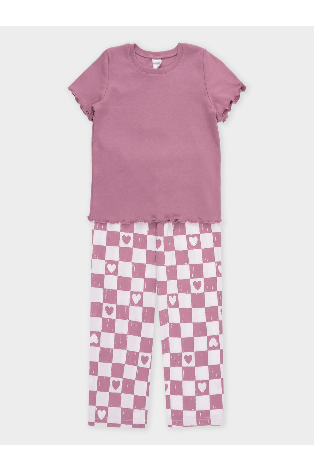 Трикотажная пижама из натурального хлопка. Футболка с короткими втачными рукавами изготовлена из эластичного трикотажа в рубчик. Брюки с эластичной резинкой в поясе выполнены из гладкого трикотажа супрем. Оригинальная набивка выполнена из стойких текстильных гипоаллергенных красителей. Изделие сохраняет цвет и форму после многократных стирок. Все трикотажные полотна производятся в соответсвии с нормами швейцарского сертификата ЭкоТекс.