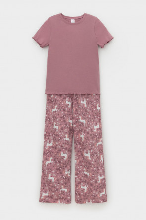 Трикотажная пижама из натурального хлопка. Футболка с короткими втачными рукавами. У футболки рукава и низ изделия обработаны микрооверлоком У брюк в комплекте мягкий, эластичный пояс на резинке. Оригинальная набивка выполнена из стойких, гипоаллергенных текстильных красителей. Комплект сохраняет цвет и форму после многократных стирок. Все трикотажные полотна производятся в соответсвии с нормами Швейцарского сертификата ЭкоТекс.