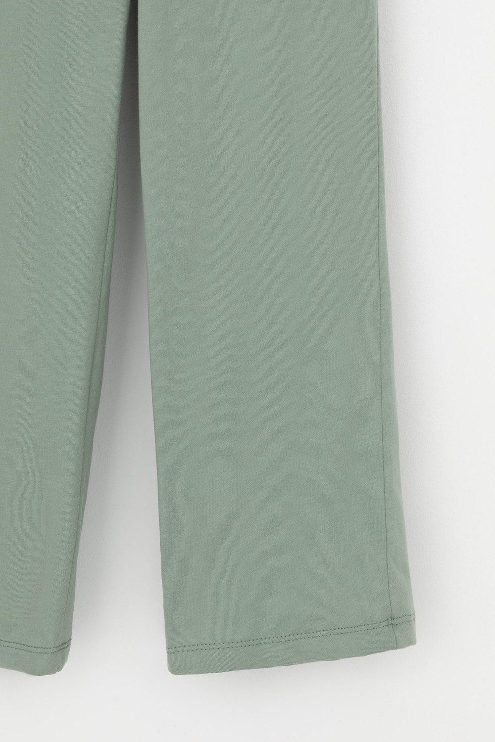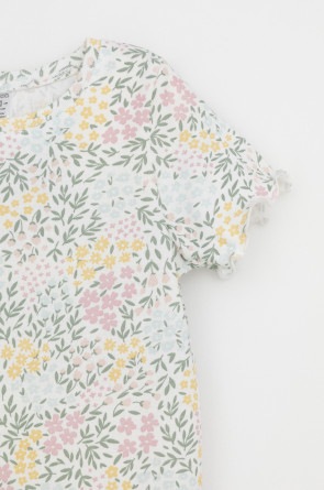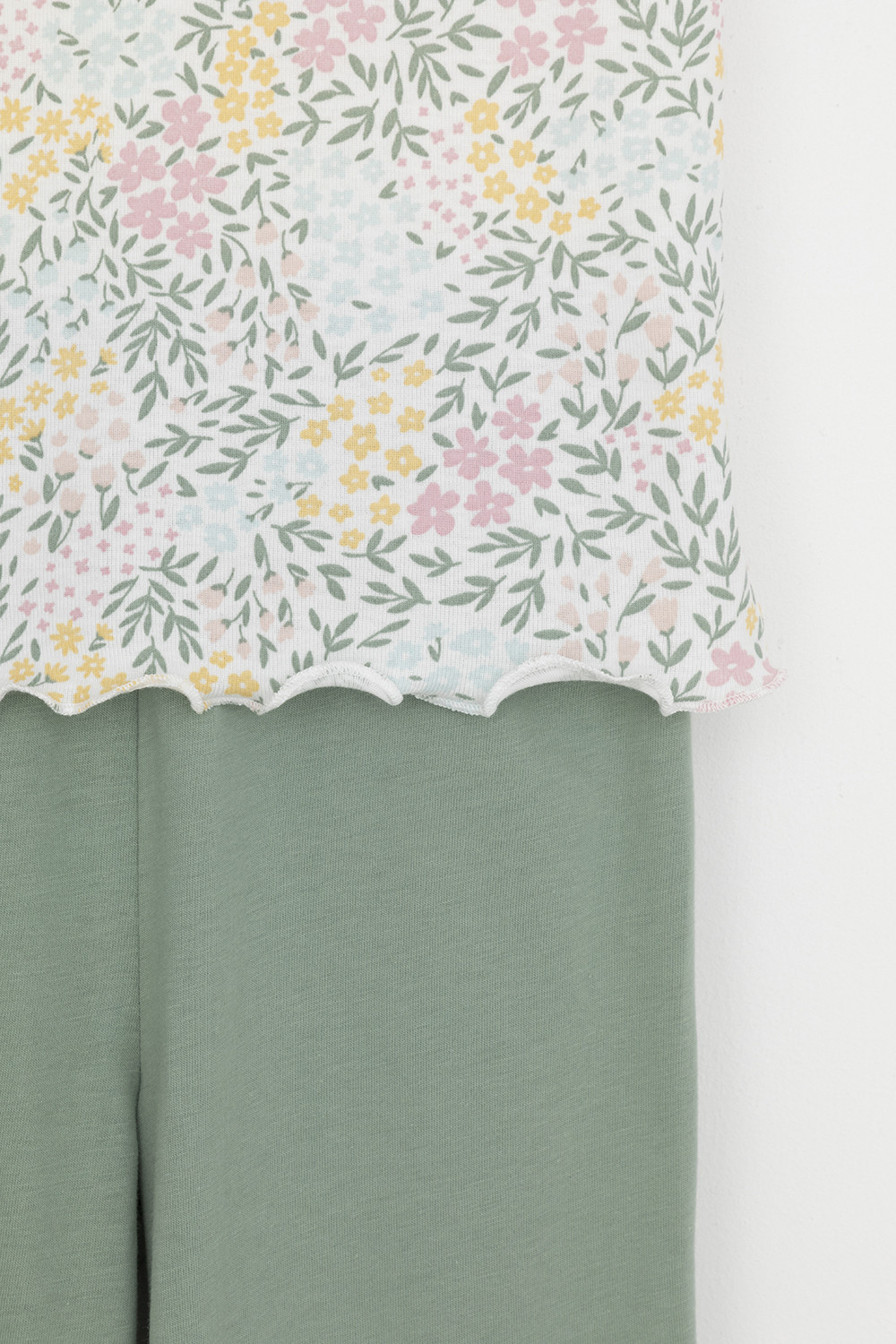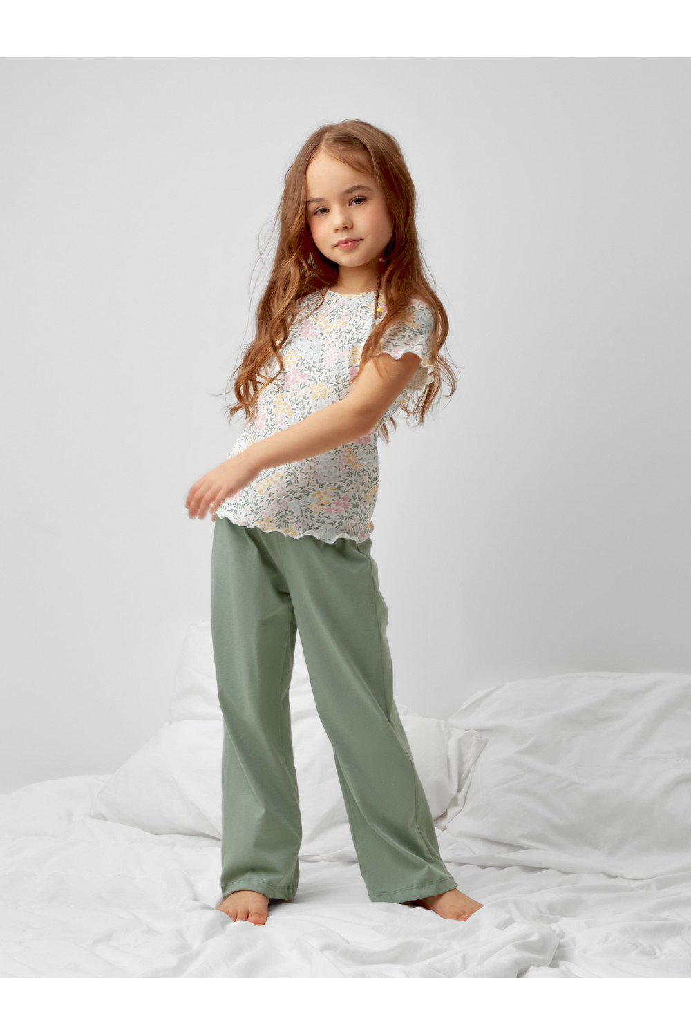 Трикотажная пижама из натурального хлопка. Футболка с короткими втачными рукавами изготовлена из эластичного трикотажа в рубчик. Брюки с эластичной резинкой в поясе выполнены из гладкого трикотажа супрем. Оригинальная набивка выполнена из стойких текстильных гипоаллергенных красителей. Изделие сохраняет цвет и форму после многократных стирок. Все трикотажные полотна производятся в соответсвии с нормами швейцарского сертификата ЭкоТекс.